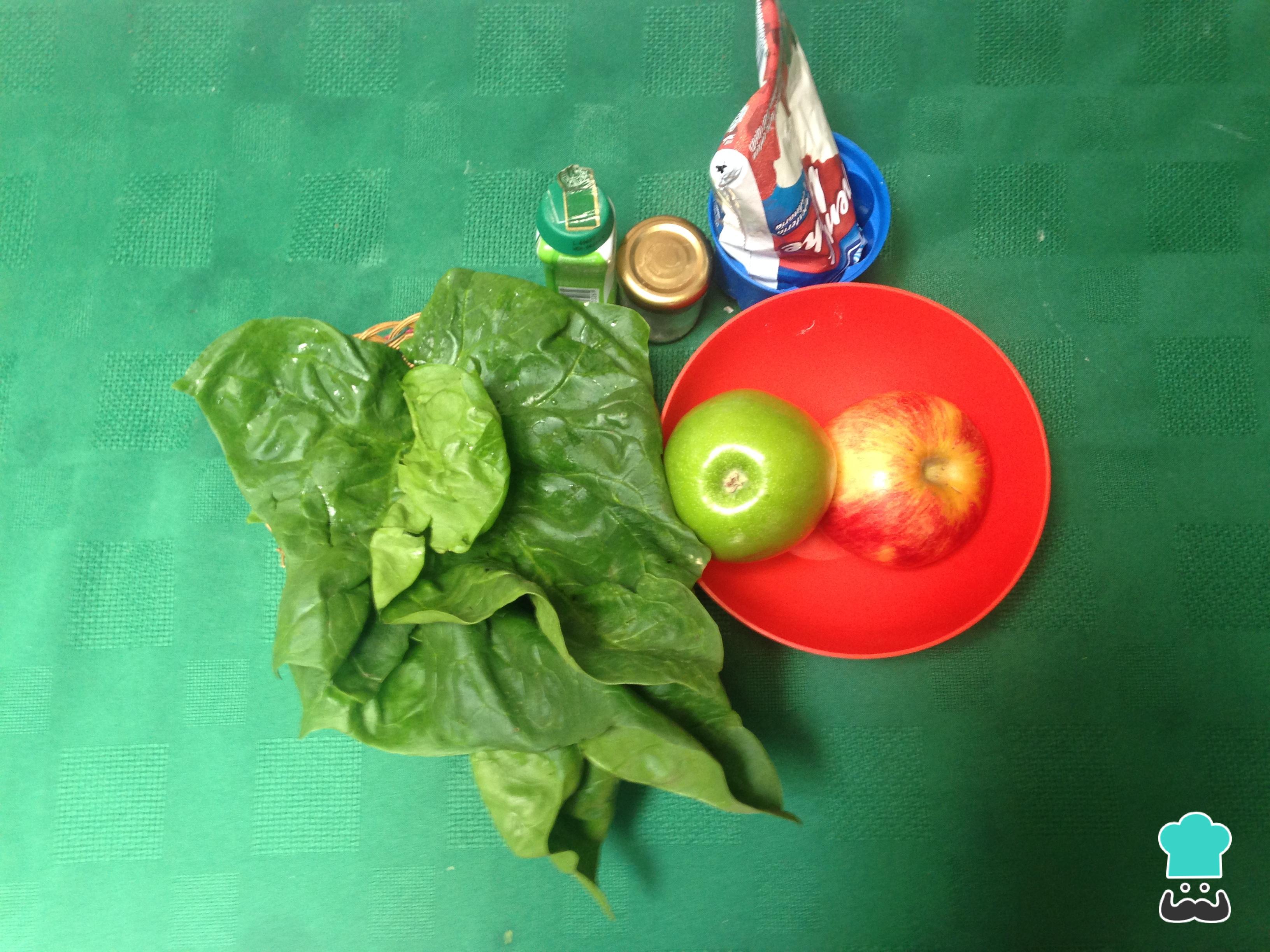 Para esta salada de espinafre e maçãs, a primeira coisa que você deve fazer é reunir todos os ingredientes.