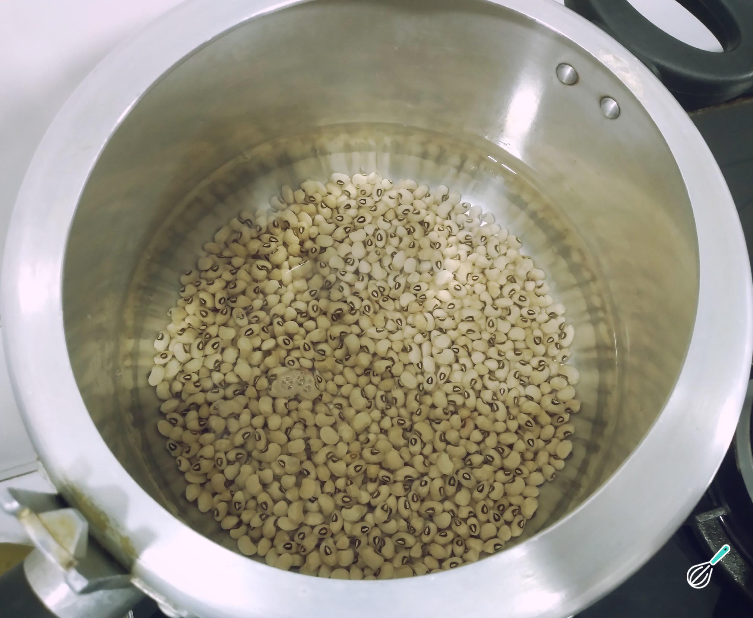 Feito isso, em uma panela de pressão coloque o feijão fradinho e cubra com água.