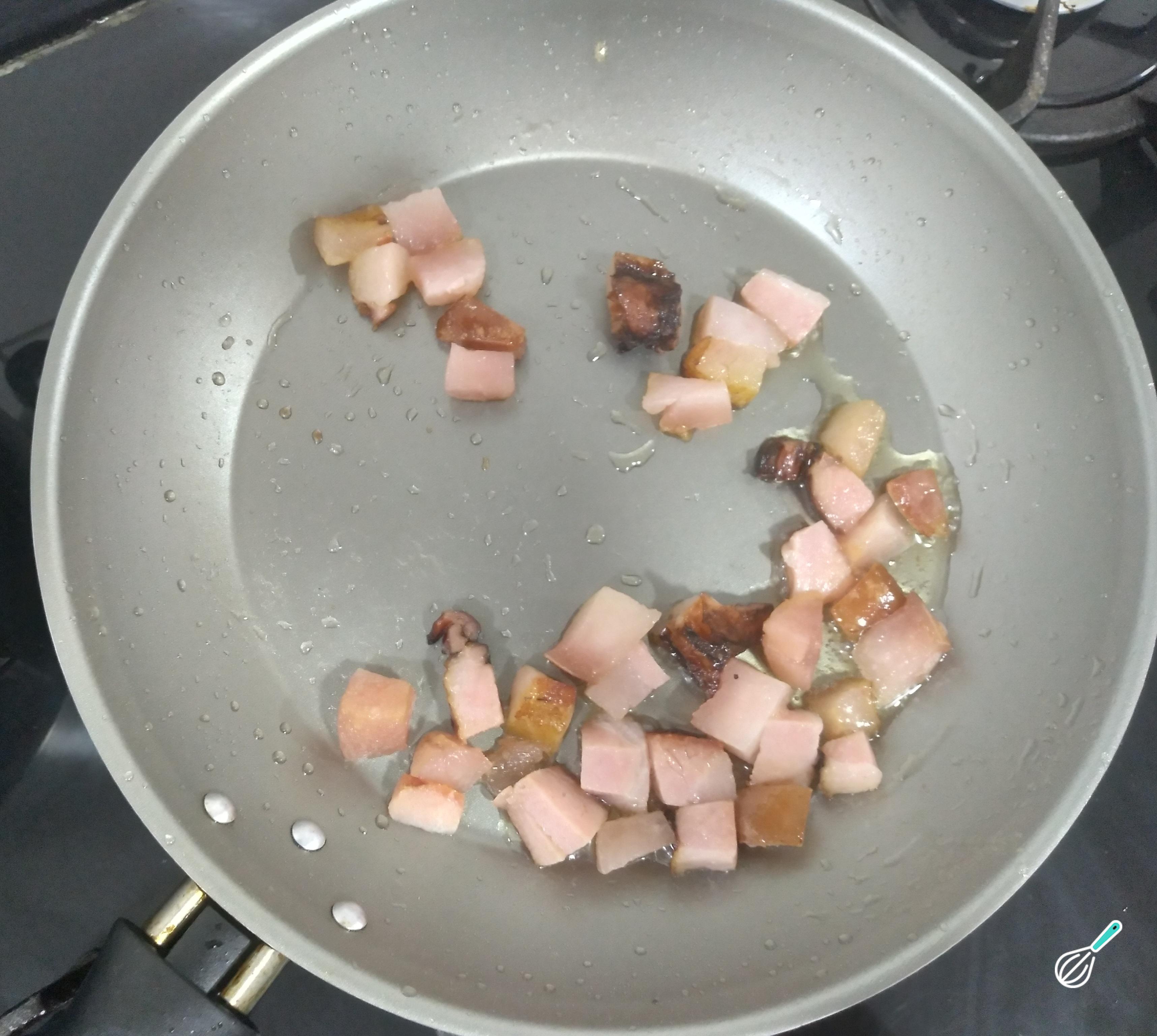 Dica: Esse processo pode ser feito sem o azeite, somente com a gordura do bacon em uma frigideira antiaderente.