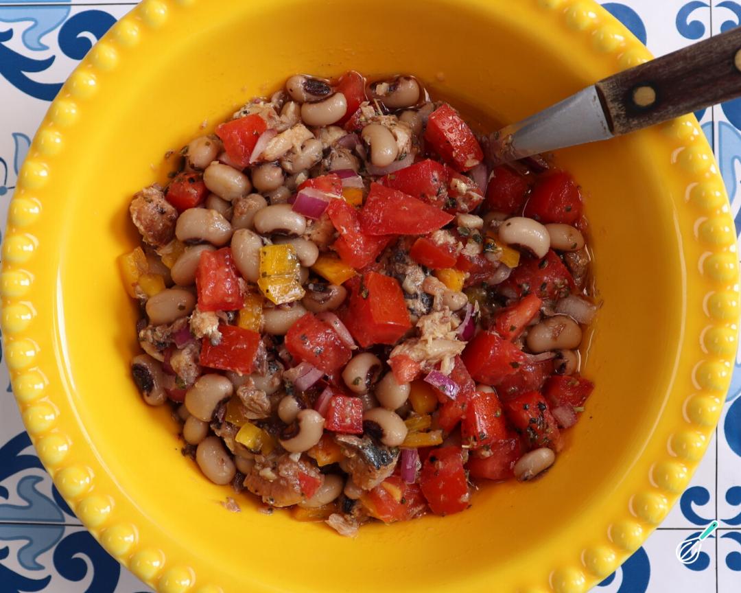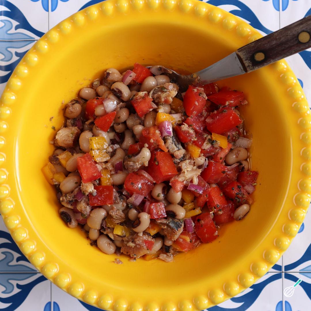 Sirva sua salada quente ou fria e conta pra gente aqui nos comentários o que você achou dessa receita de feijão fradinho com sardinha.