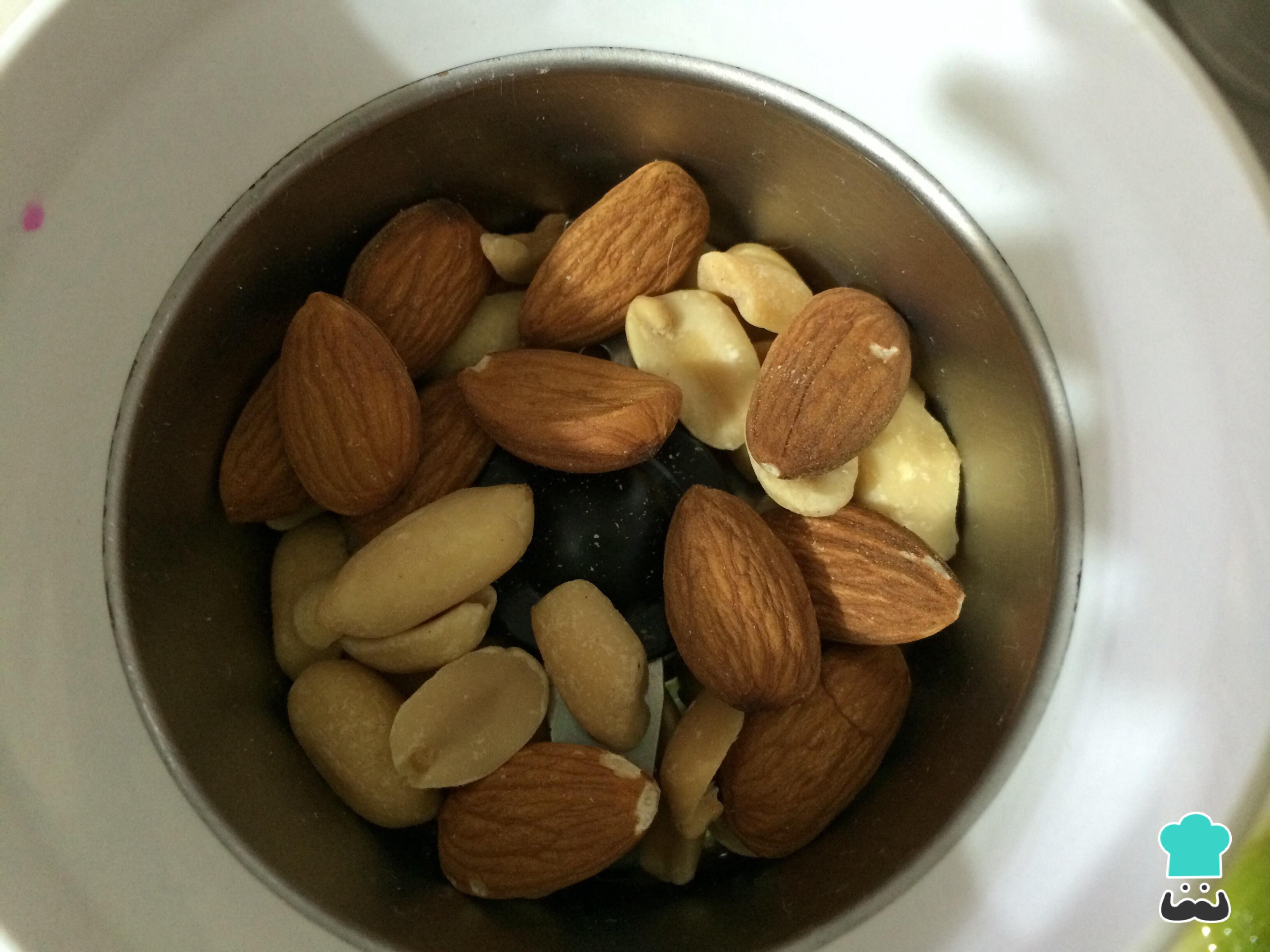 Num processador de alimentos bata os frutos secos desta salada de frutas light. Preste atenção para não bater demasiado, ou o resultado será uma manteiga de amendoim e amêndoa.