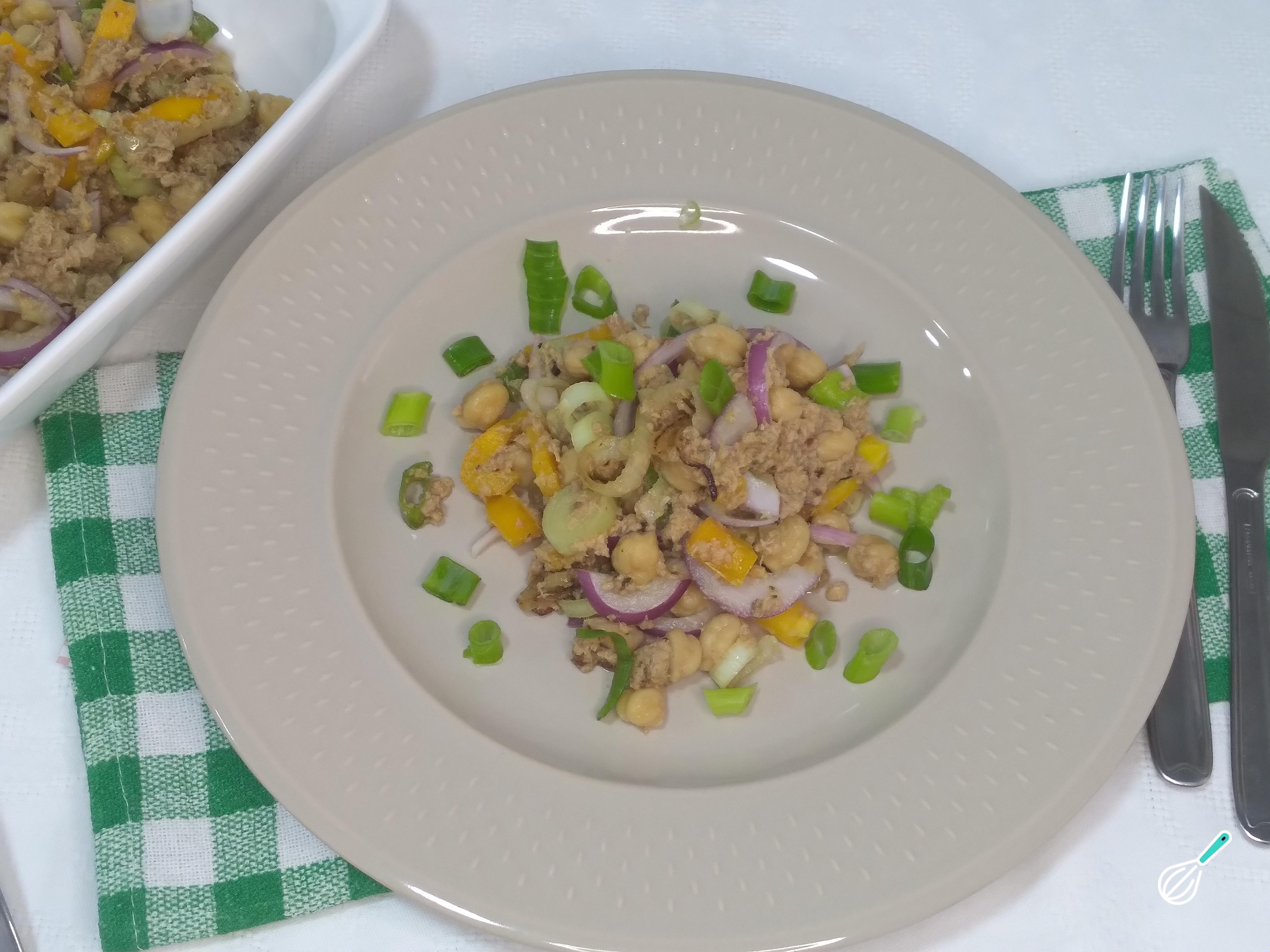 Como fazer Salada de grão-de-bico com atum: