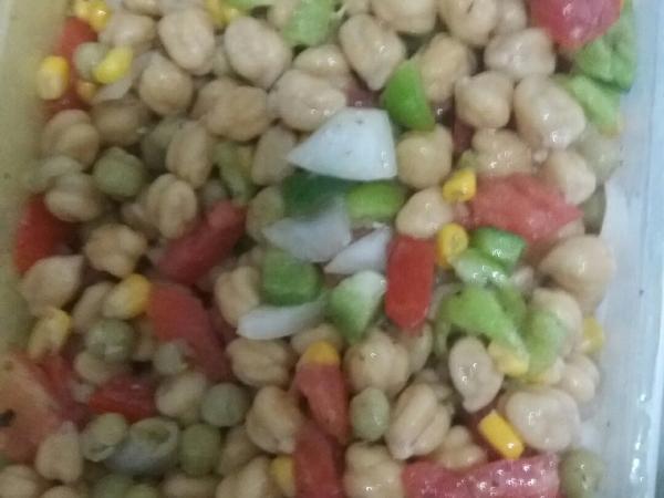 salada grão de bico com ervilhas milho verde tomate cebola e orégano e azeite e limão