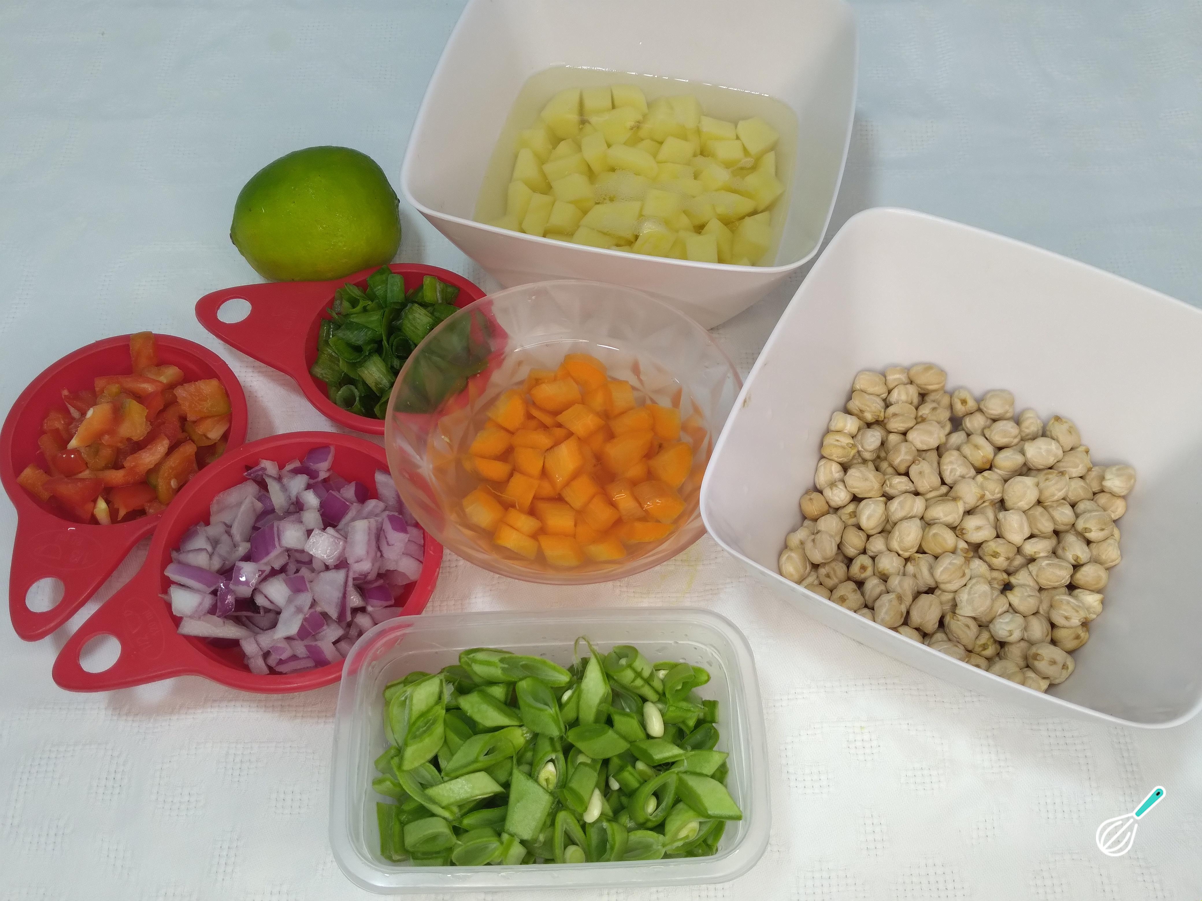 Essa salada leva cenoura, batata e vagem. Um sabor harmonioso e agradável juntamente com o grão de bico. Vamos aprender essa salada de grão de bico com legumes no passo a passo em fotos abaixo.