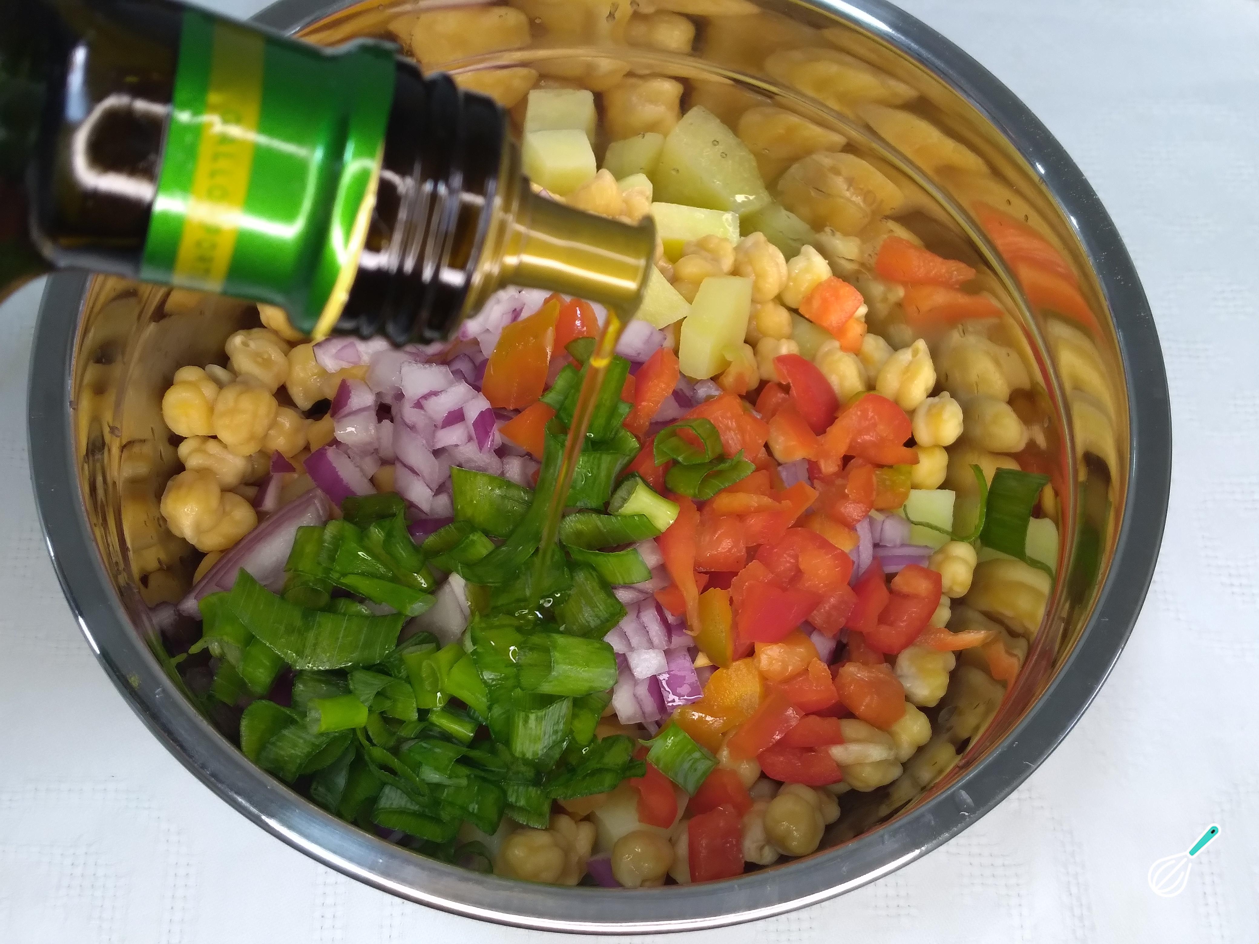 Feito isso misture o restante dos ingredientes, os temperos e tempere com azeite.