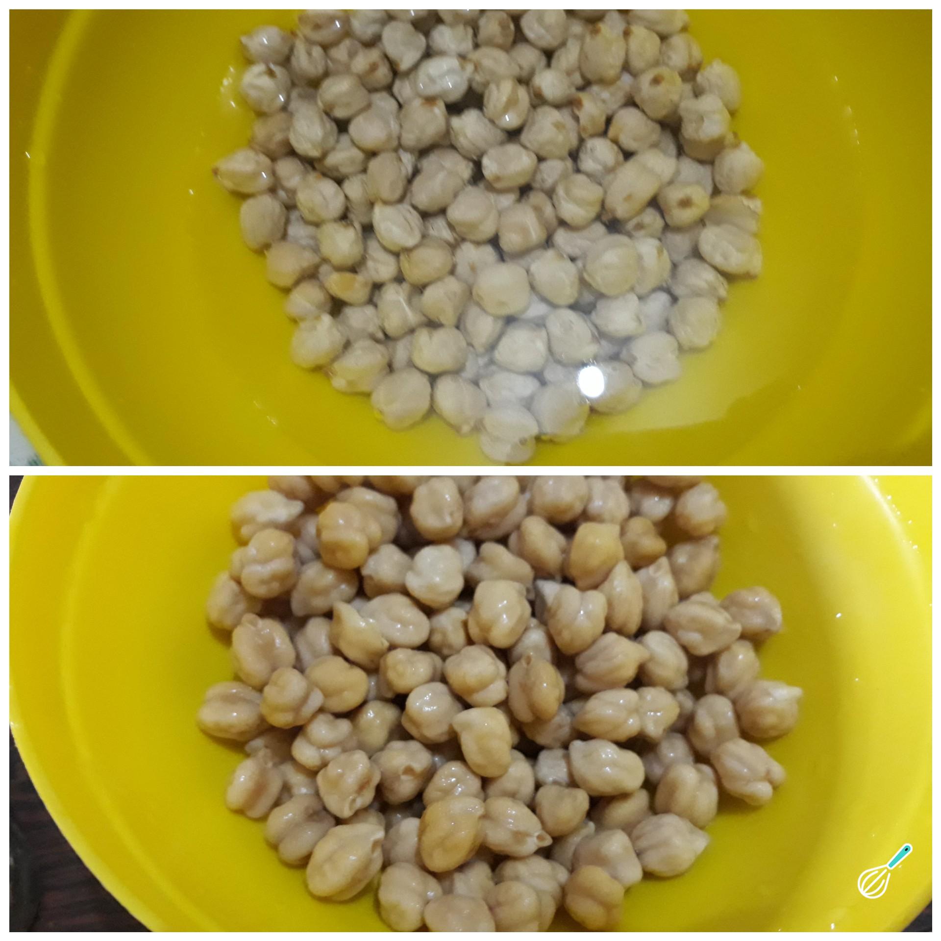 Como fazer grão de bico? Comece por deixar o grãos de bico de molho em água filtrada por 12 horas.