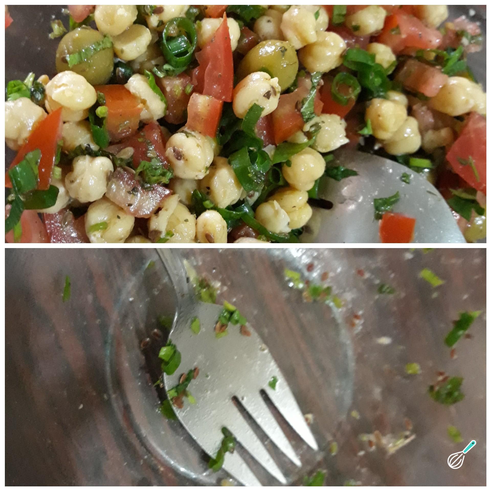 Prontinho! Desfrute desta deliciosa salada de grão de bico com tomate, refrescante saudável e aprovadíssima!