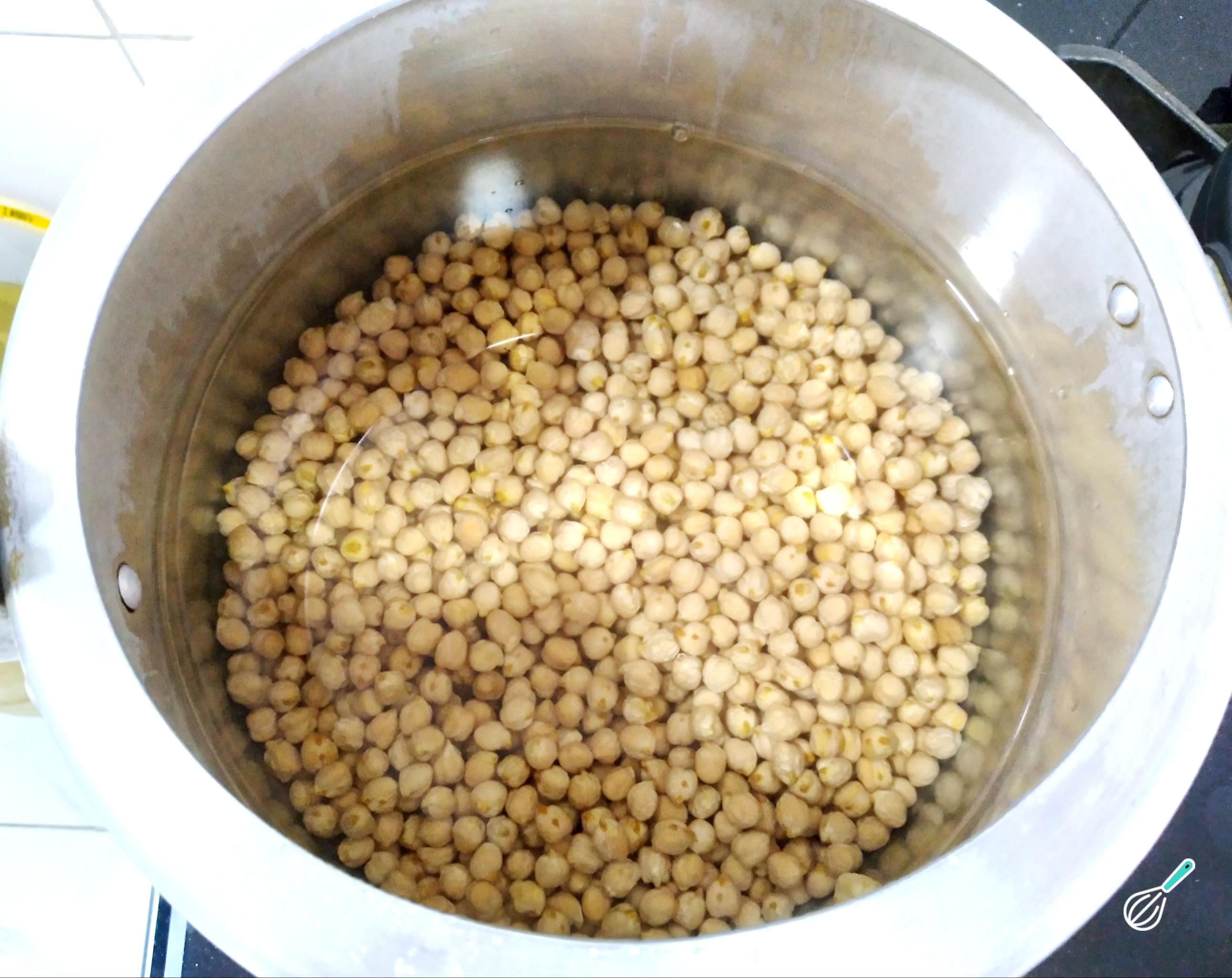 Dica: se preferir, deixe o grão de bico de molho por cerca de 4 horas antes de cozinhar. Dessa forma pode ser cozido na panela comum, caso não utilize panela de pressão.