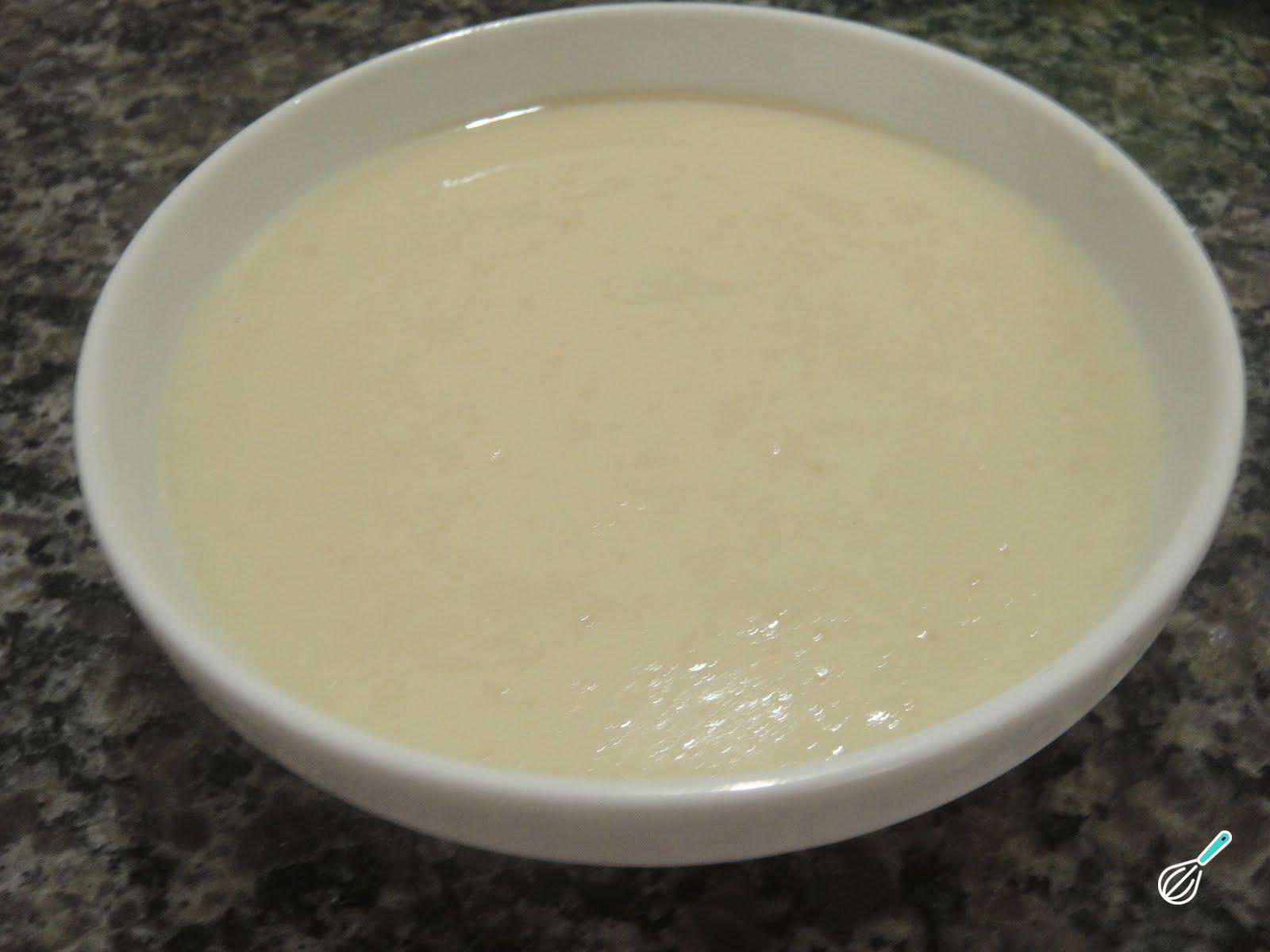 Para fazer essa salada de legumes no vapor, comece por misturar e bater todos os ingredientes do molho em uma travessa.