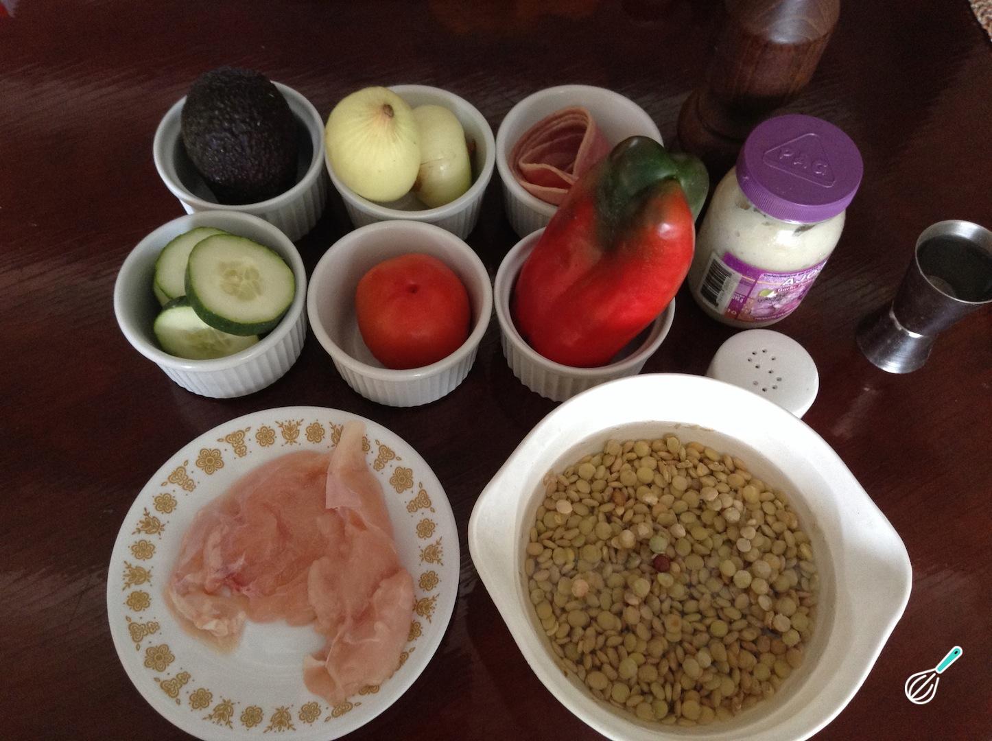 O primeiro passo para fazer esta salada saudável é reunir todos os ingredientes - confira como fazer pasta de alho caseira. Para cozinhar as lentilhas, é importante que elas tenham ficado demolhadas em água durante algumas horas, sendo que o ideal é de um dia para o outro.