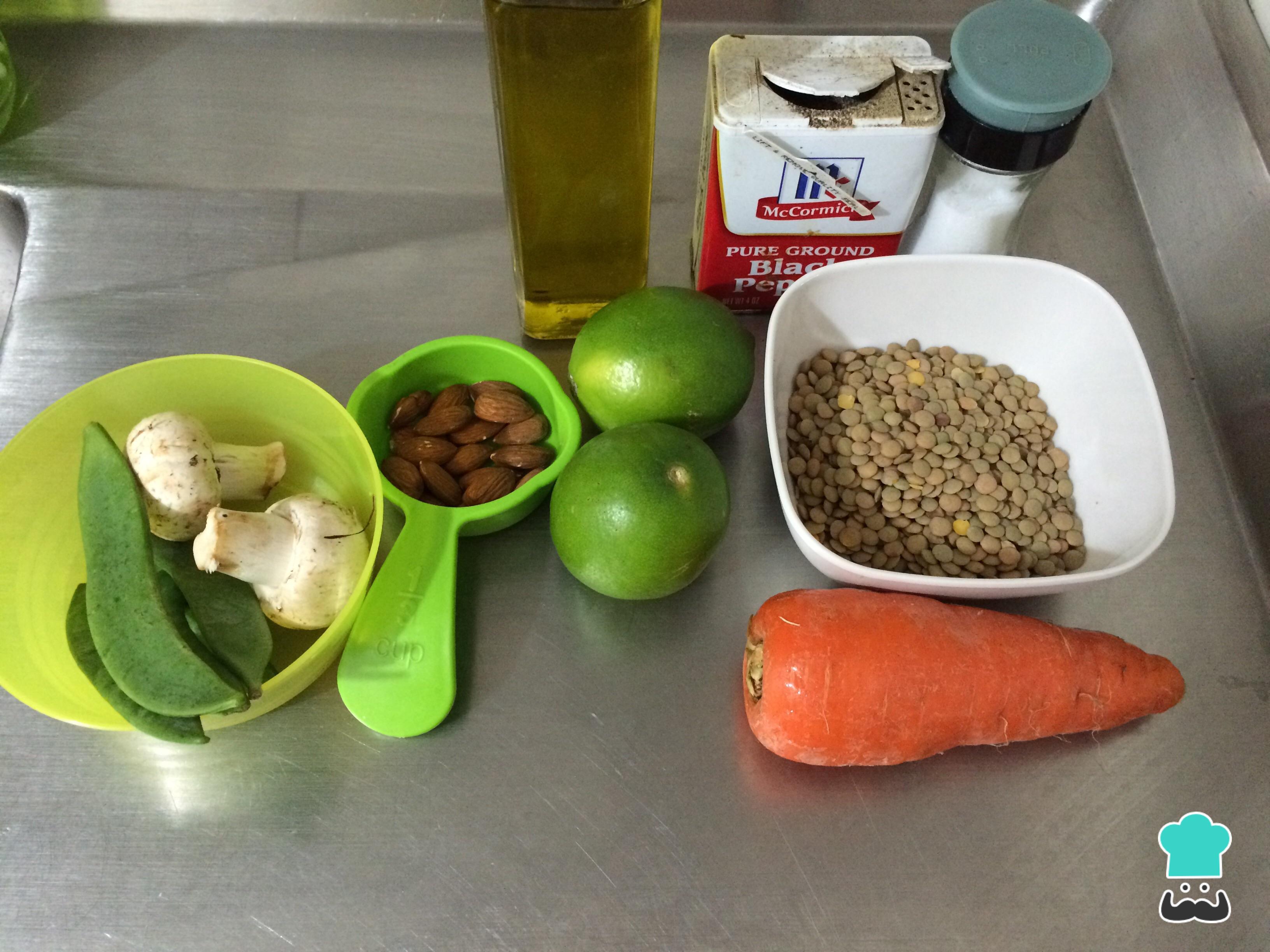 Para fazer esta receita de lentilhas, o primeiro passo é preparar todos os ingredientes.