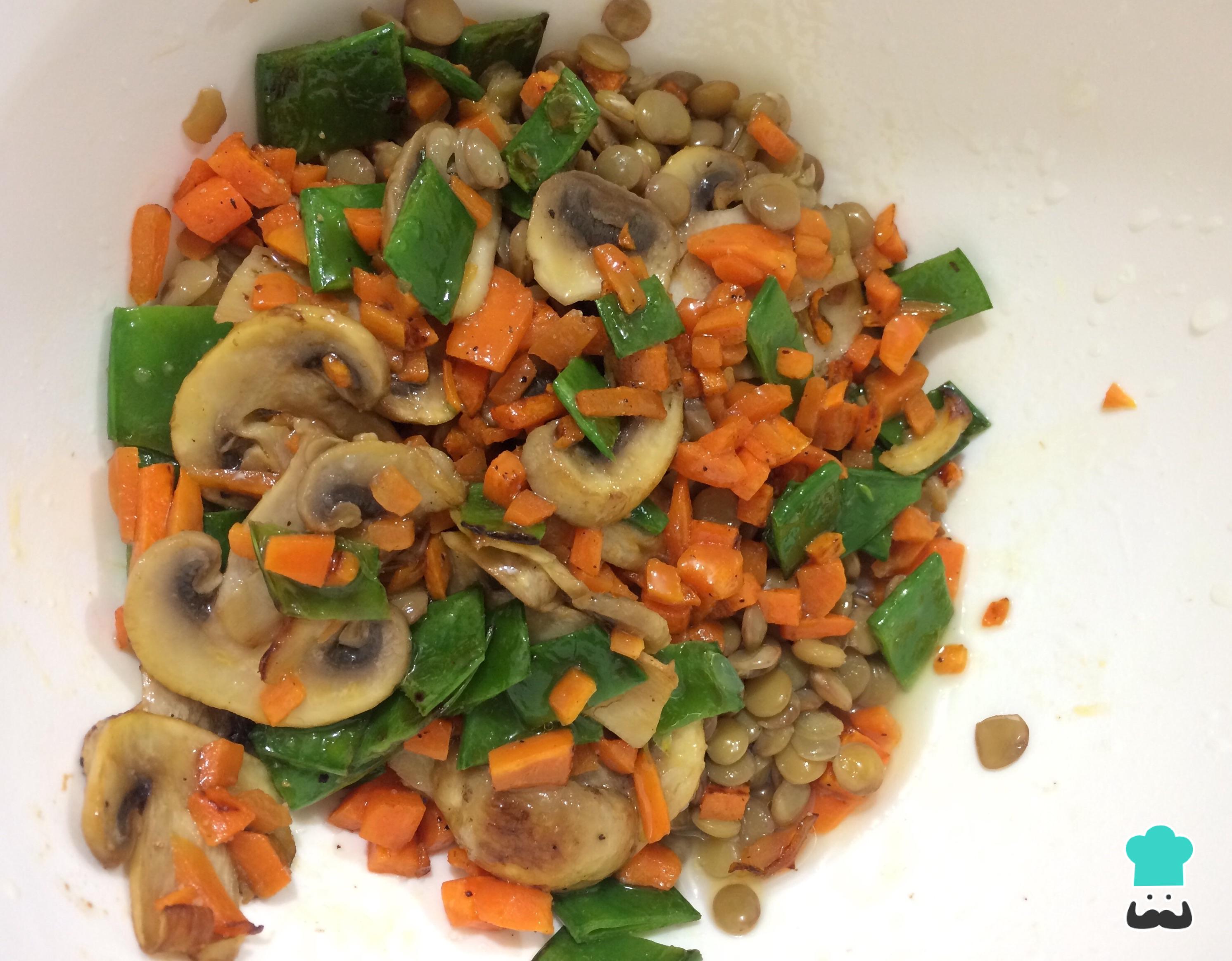 Após o passo anterior, e quando as lentilhas estiverem cozinhadas, misture tudo e tempere com suco de limão e, se necessário, mais sal, pimenta e azeite de oliva.