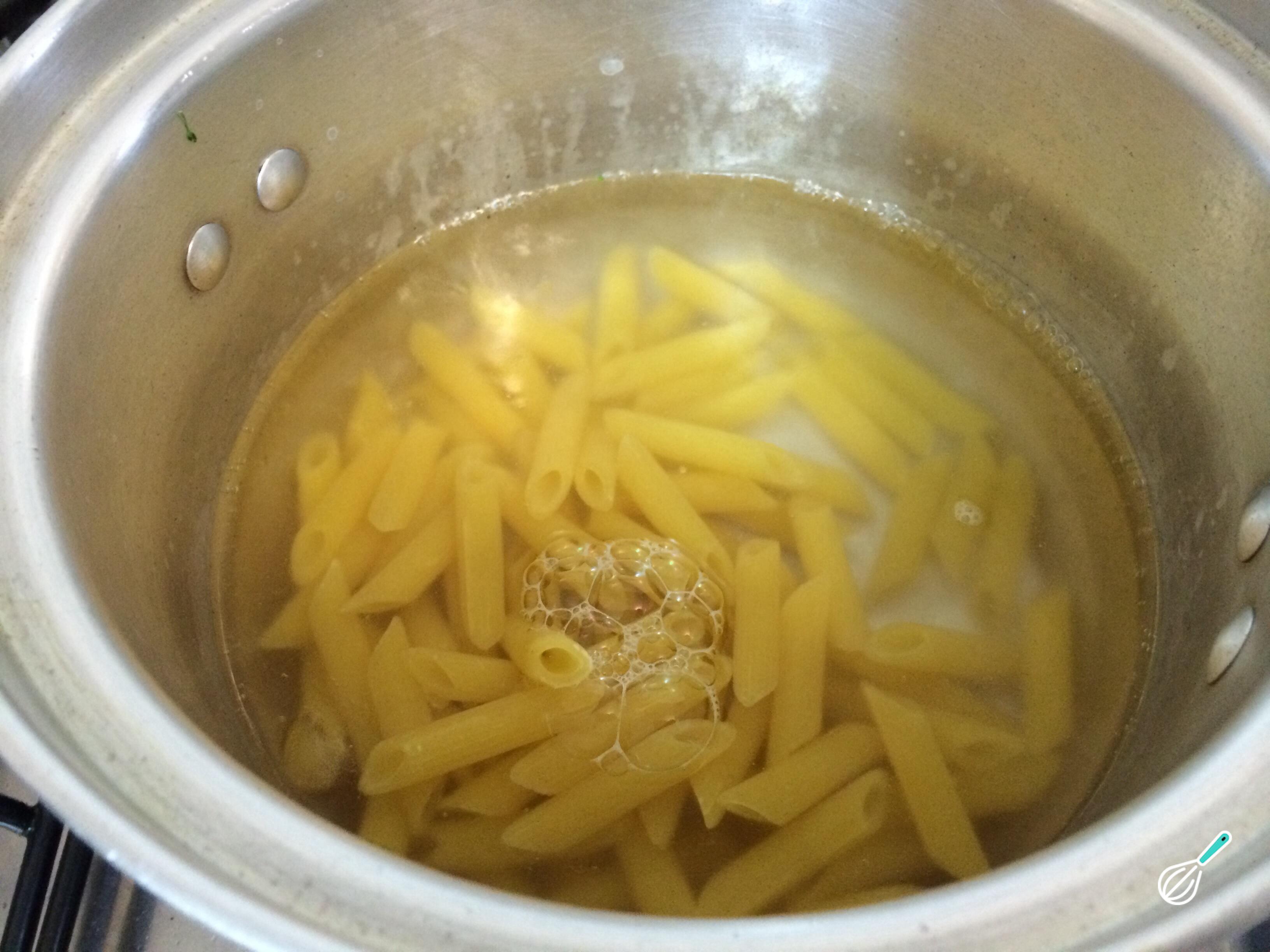 Enquanto isso, continue preparando a salada de macarrão fit com brócolis e pesto: cozinhe o macarrão em água fervente com um pouco de sal, por 12 minutos, ou até que esteja al dente. Escorra a deixe esfriar.
