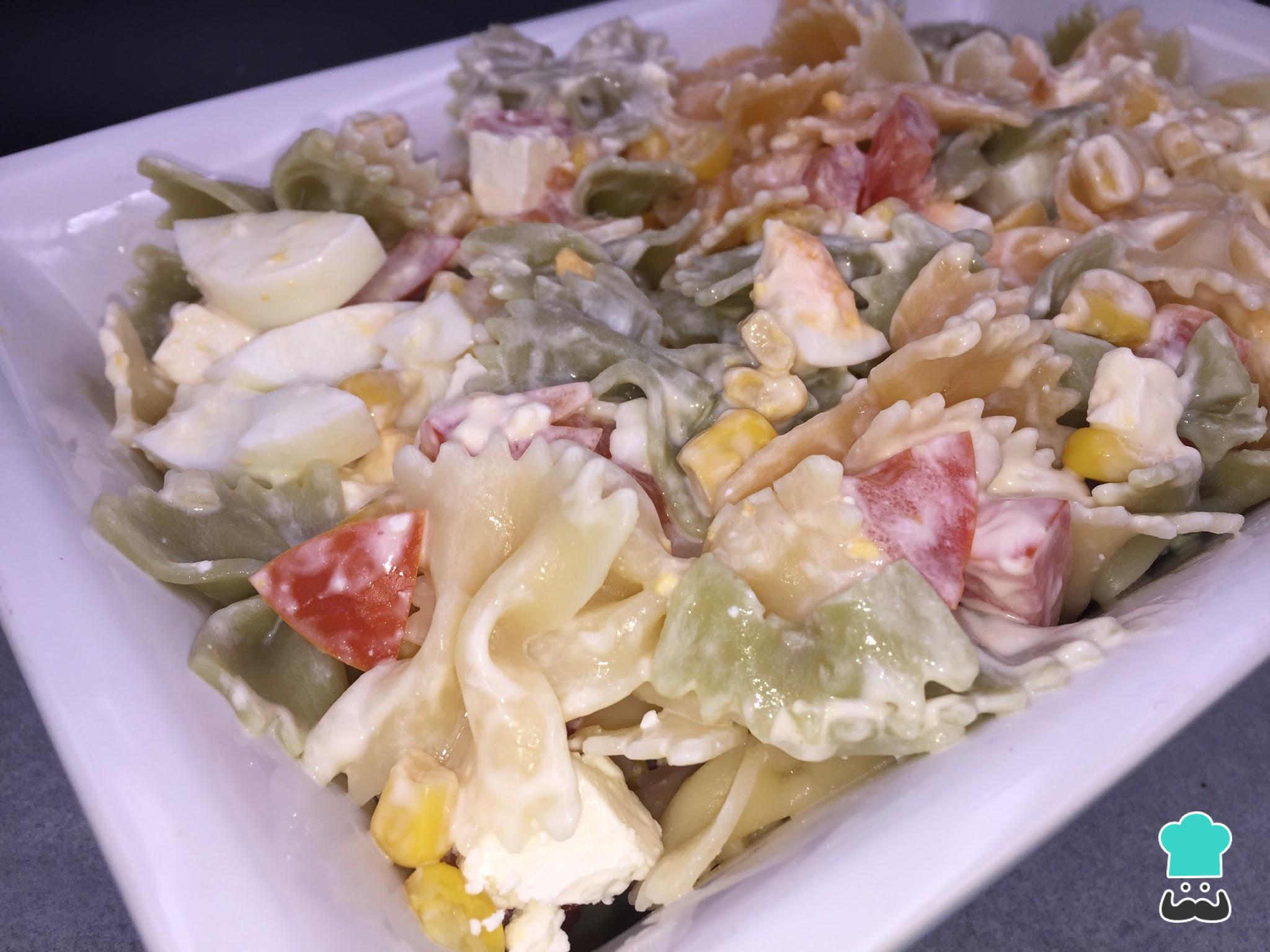 Coloque maionese a gosto na massa, misture bem e a sua salada de macarrão gravata está pronta!