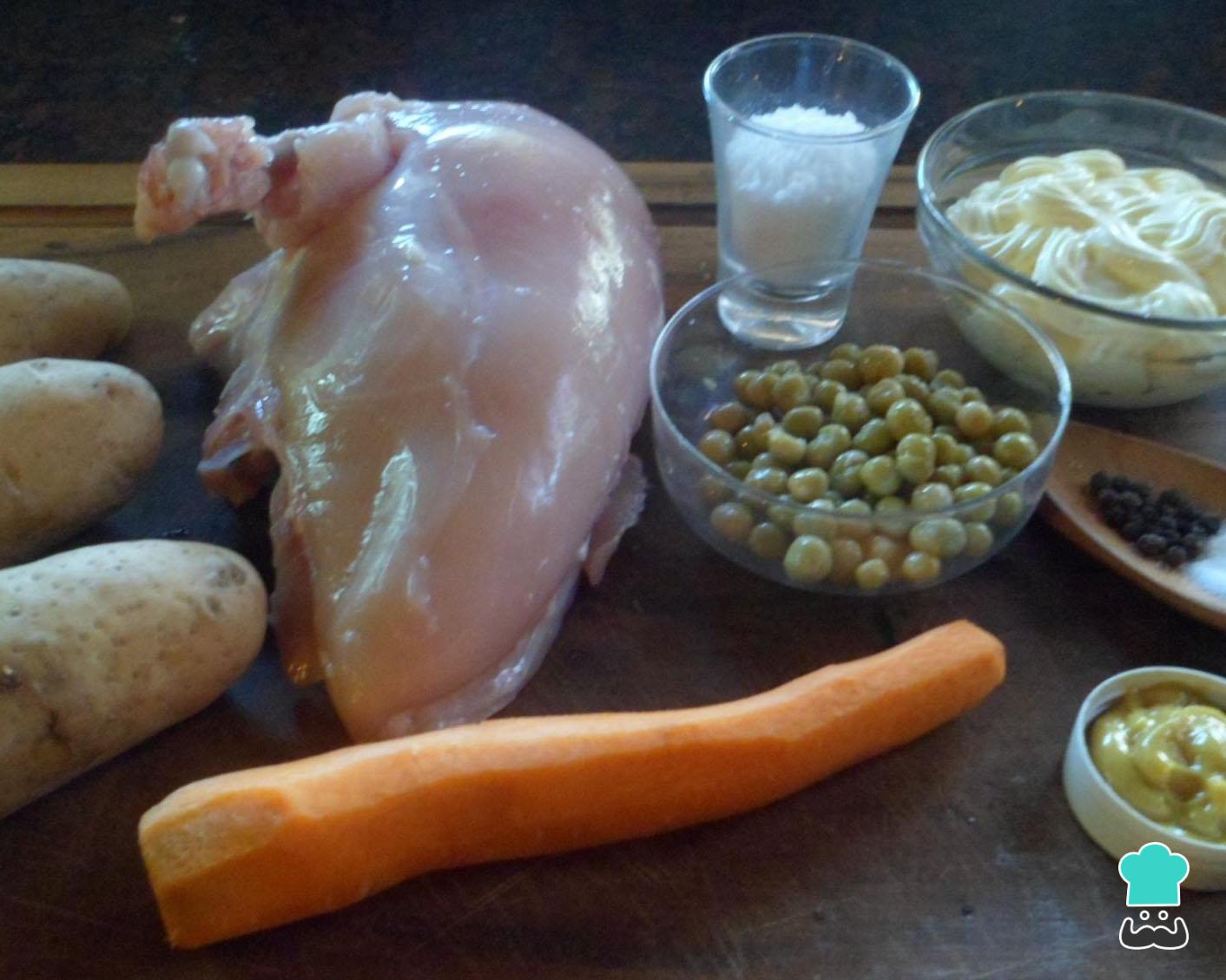 Para preparar esta receita de salada de maionese com frango você precisa somente de um peito de frango, alguns legumes (batata, cenoura e ervilha), maionese, mostarda, sal e pimenta do reino. Cozinhe o peito de frango e os legumes do jeito indicado, misture tudo e reserve na geladeira, pois esta salada de frango desfiado com maionese fica mais gostosa para servir geladinha.