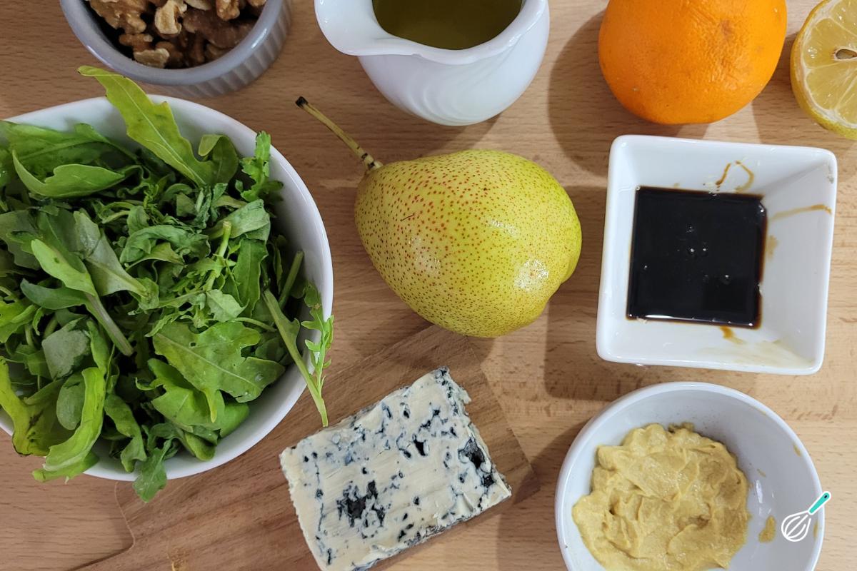 Separe os ingredientes para fazer sua salada de pera e gorgonzola.