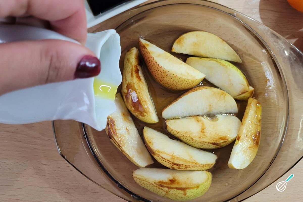 Dica: Se quiser preparar com antecedência, você pode levar as peras para o forno e deixar na geladeira até a hora de servir, mas só misture a salada quando for servir para evitar que murche.