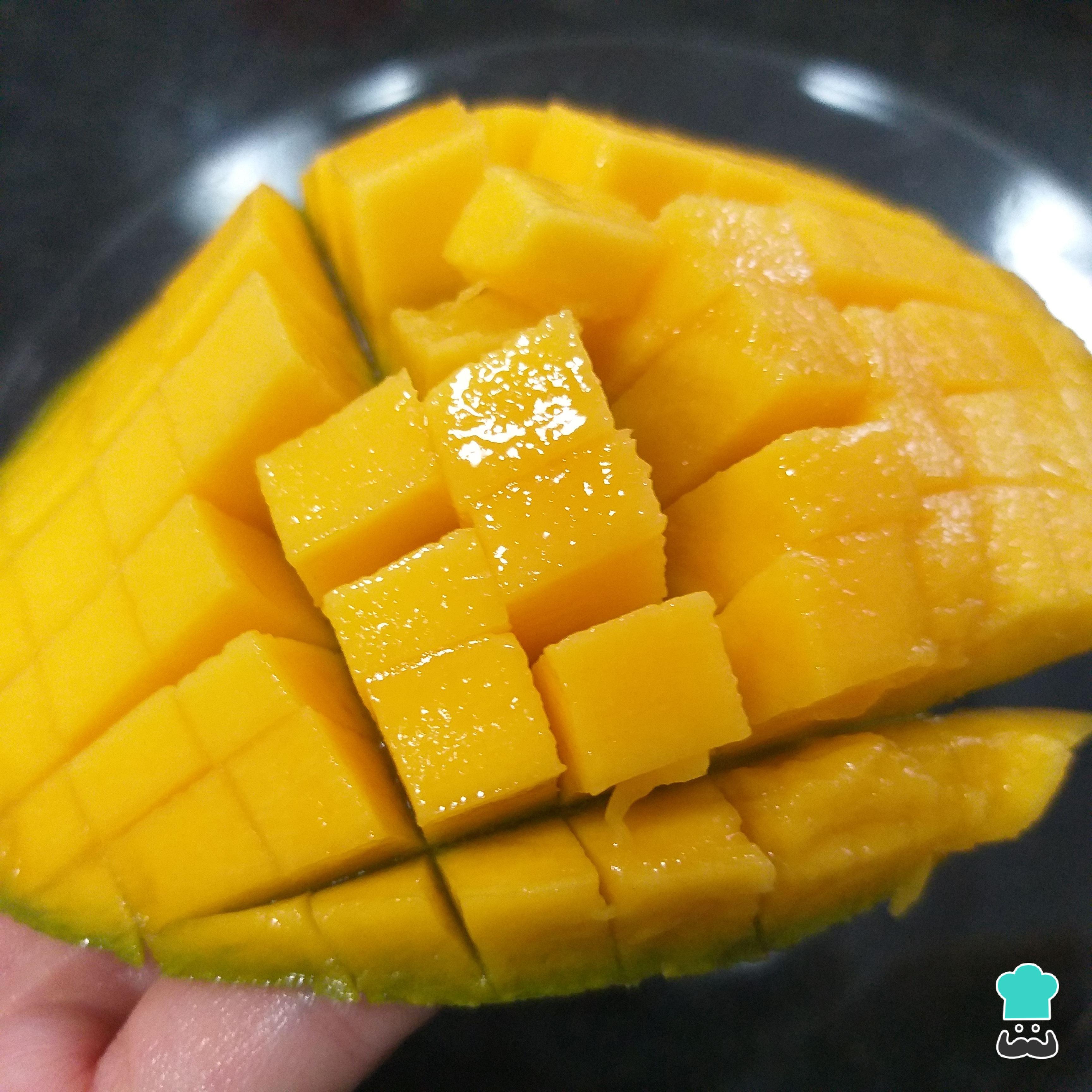 Corte uma fatia de manga em cubos pequenos e reserve.