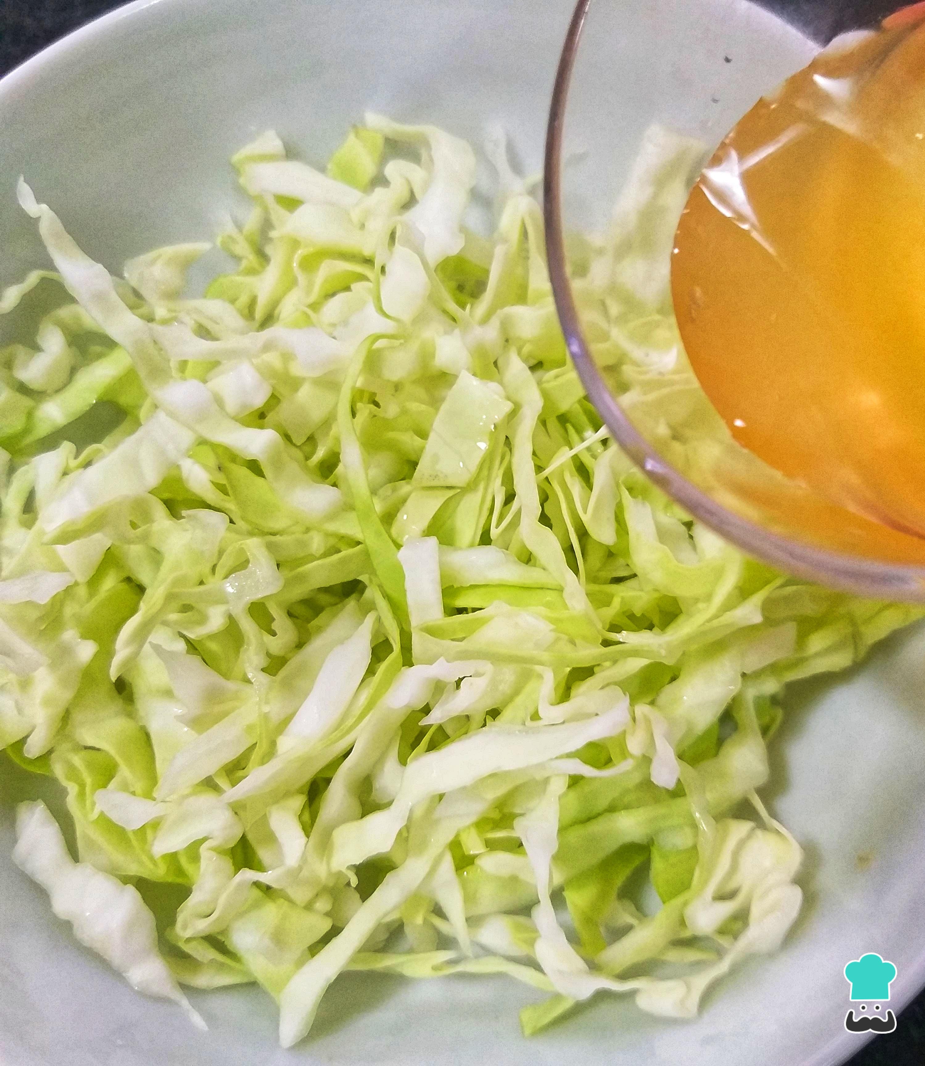 Separe o caldo (suco) de meio limão e misture ao repolho.