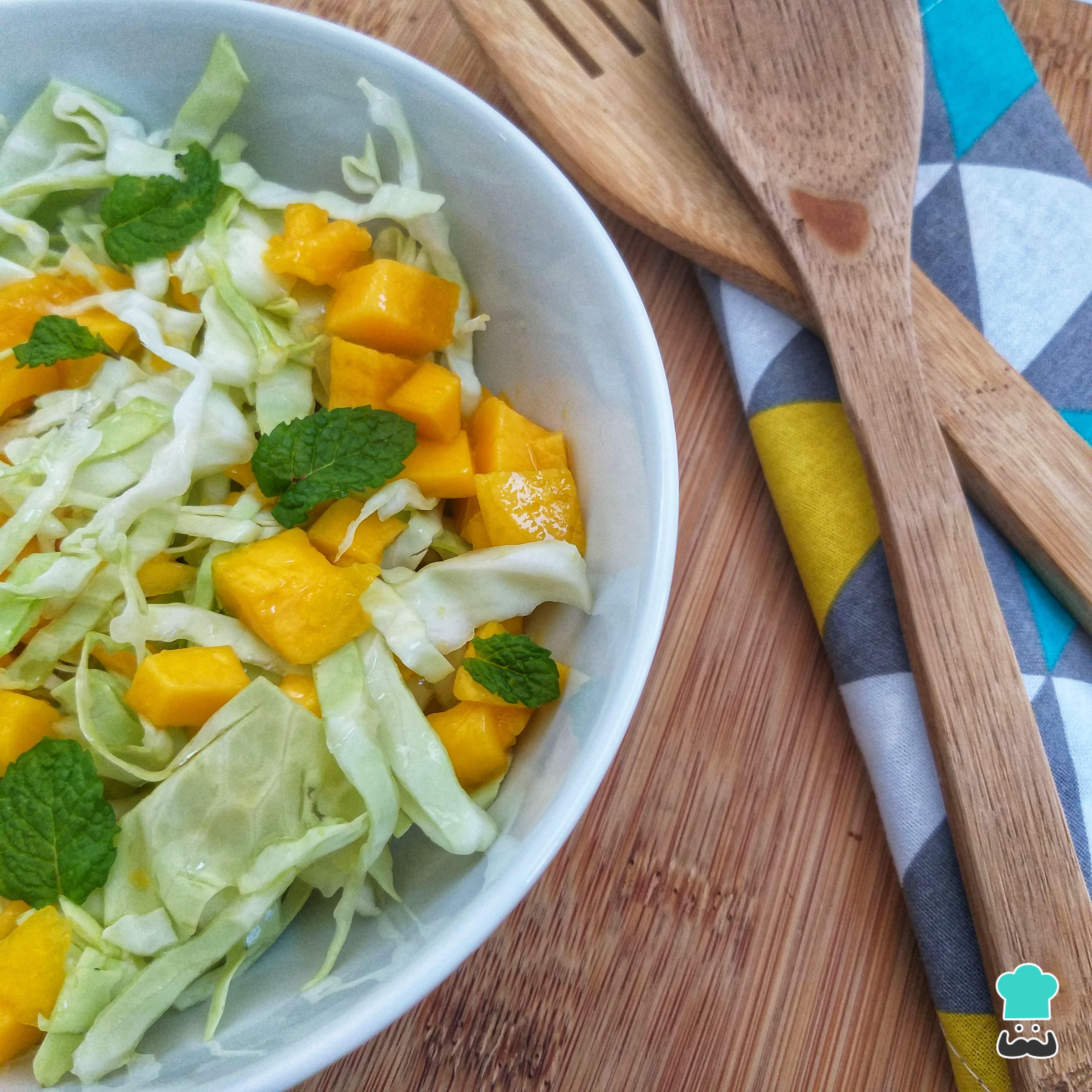 O doce da manga misturado ao repolho crocante e ainda o toque aromático da hortelã resultam num sabor super especial, sem necessidade de acrescentar qualquer molho pronto (nem mesmo maionese). Tenho a certeza que, depois de provar, você vai querer preparar essa salada tropical com repolho muitas outras vezes.