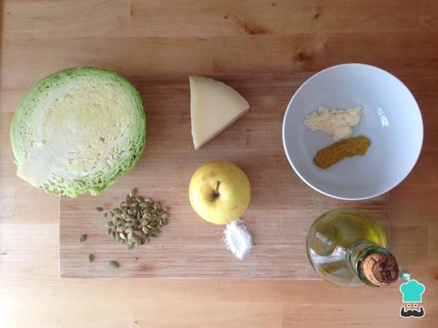 Reúna todos os ingredientes da lista acima para começar a fazer a salada de repolho e queijo.