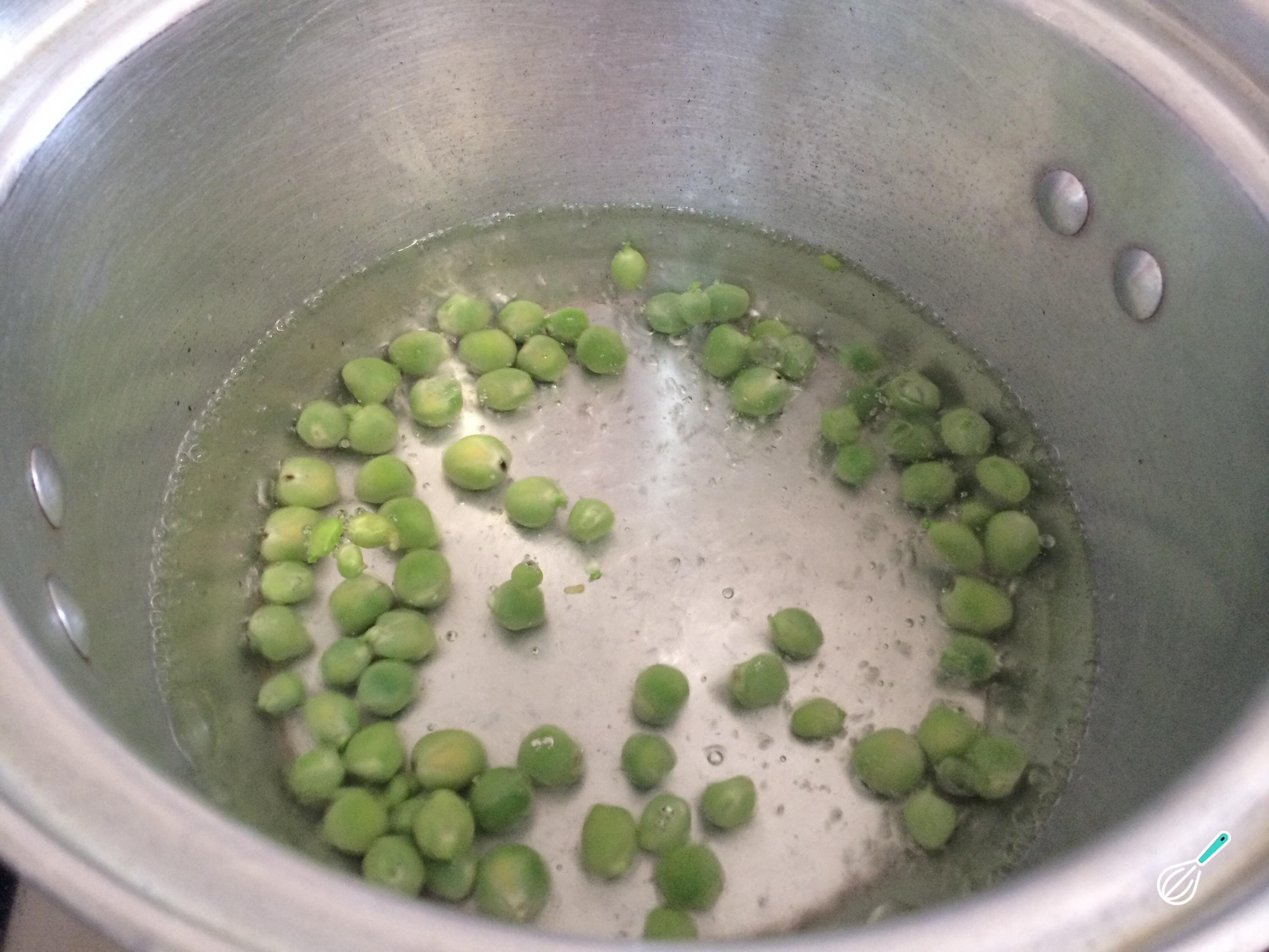 Se estiver usando ervilhas cruas, cozinhe-as em uma panela com água e sal durante cerca de 5 minutos, para que não fiquem macias demais.