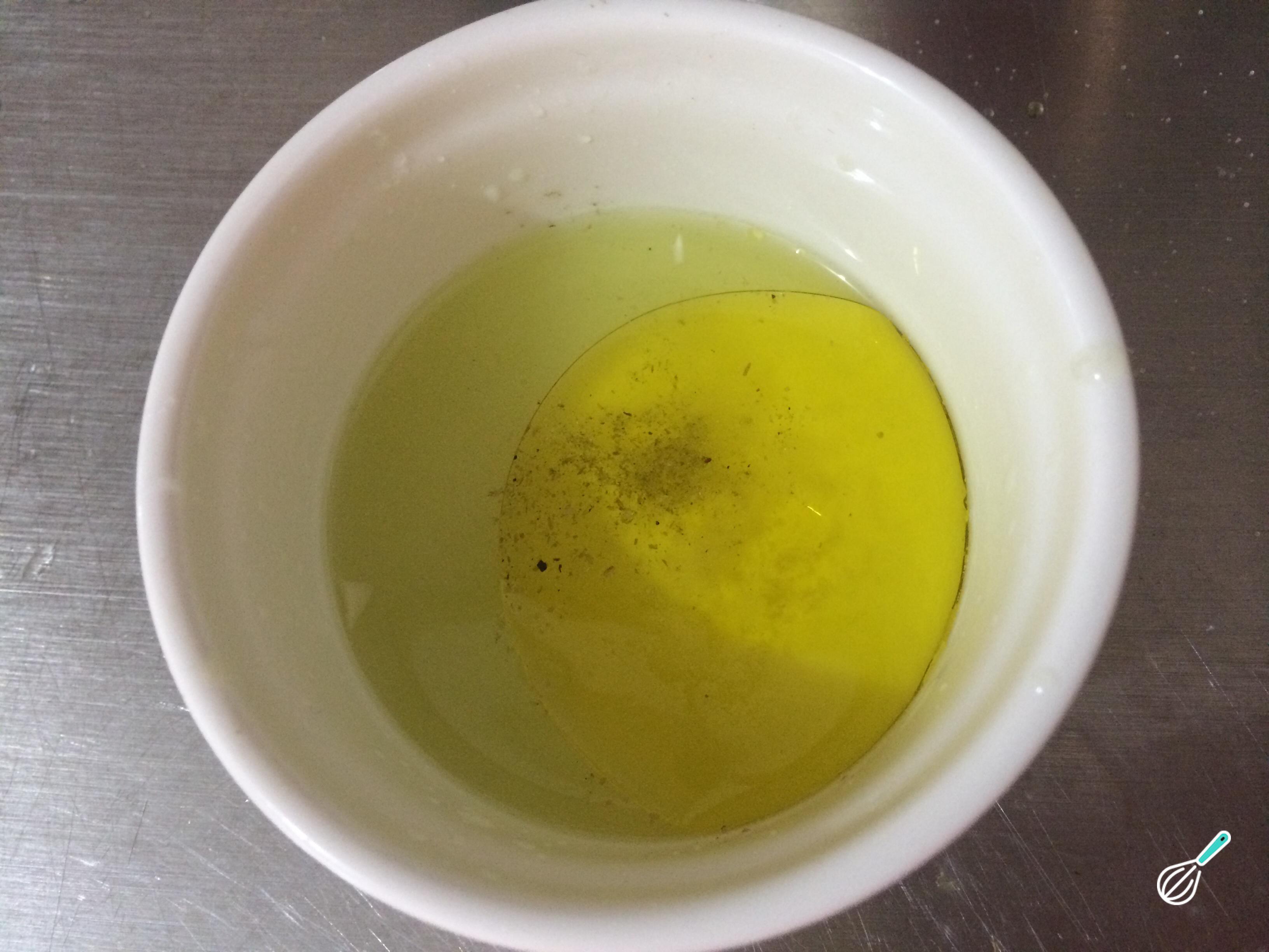 Para o vinagrete, misture o azeite de oliva e suco de limão, sal e pimenta. Misture até ficar estável.