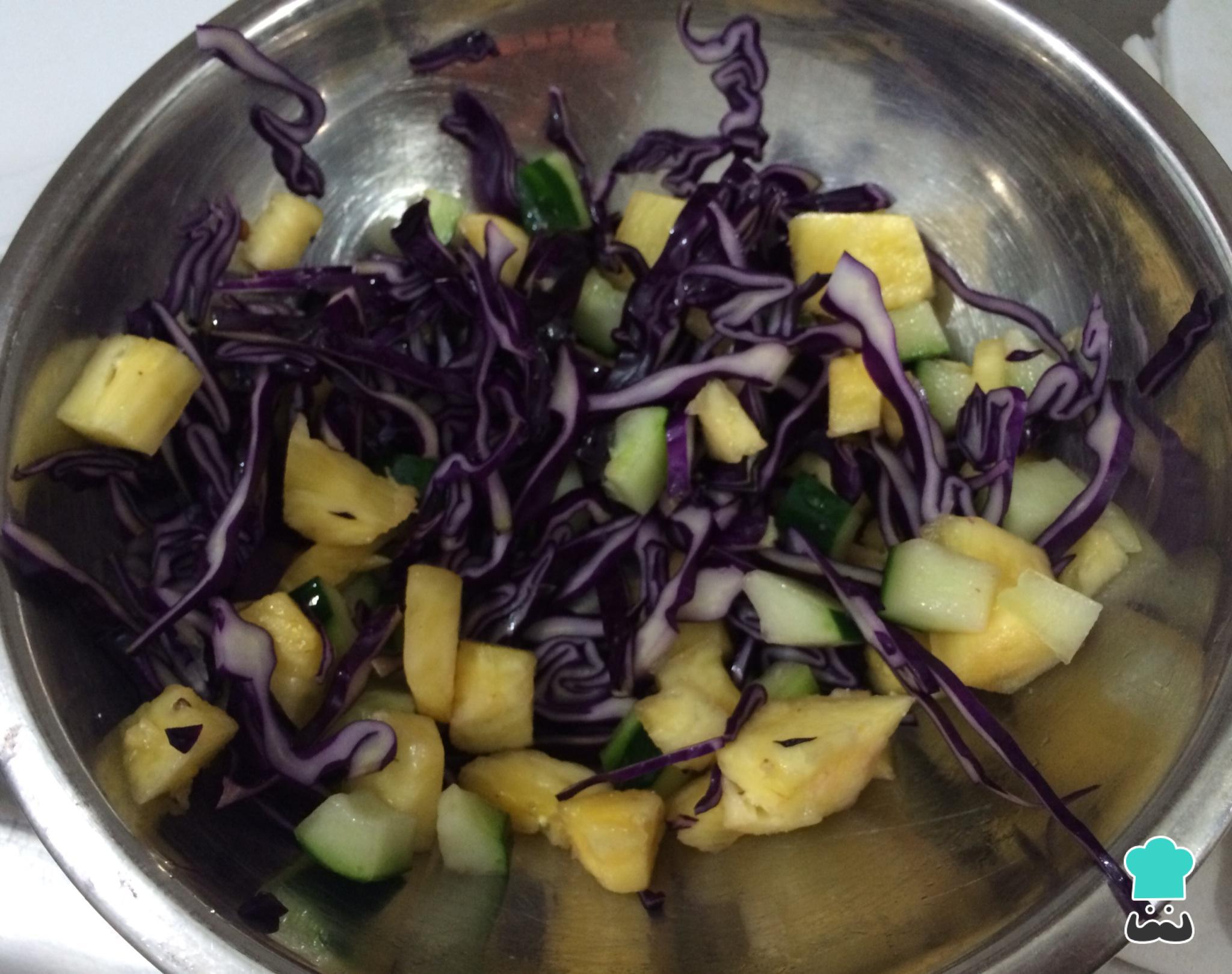 Como fazer Salada de repolho roxo com abacaxi: