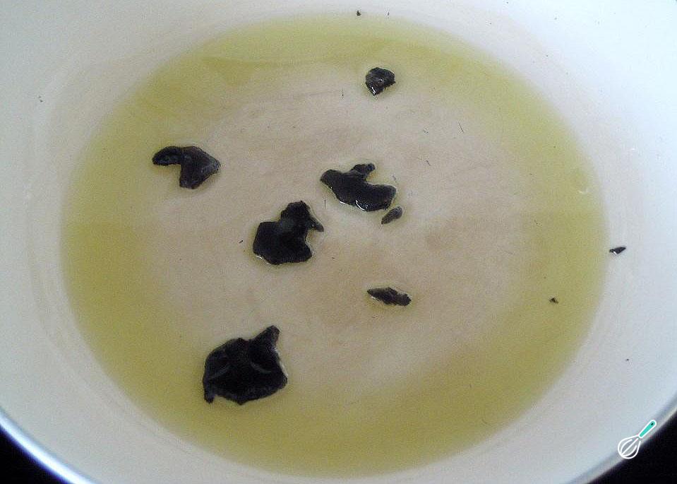 Leve ao fogo baixo uma frigideira ou panela com 3-4 colheres de sopa de azeite de alecrim e adicione a trufa. Deixe cozinhar levemente por 1-2 minutos, para que liberte seu aroma.