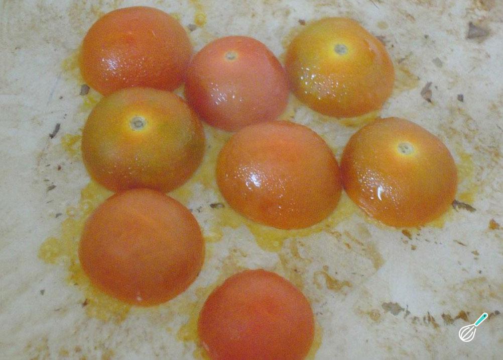 Adicione os cogumelos e os tomates nessa frigideira, para aproveitar os sabores, e tempere com um pouco de sal. Deixe cozinhar por 1-2 minutos, somente até amolecer um pouco.