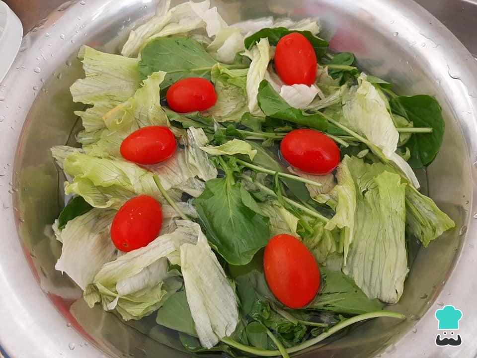 Higienize e lave as folhas e tomatinhos, antes de preparar a salada.