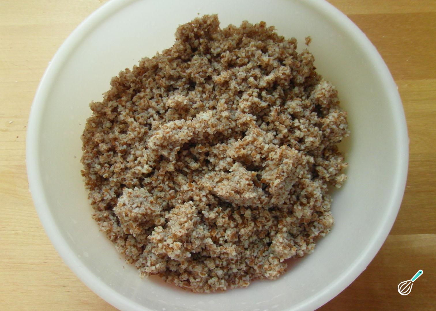 Para fazer essa receita de salada marroquina é necessário colocar o trigo hidratando em água morna por 1 a 2 horas. Após esse tempo escorra, esprema e reserve.