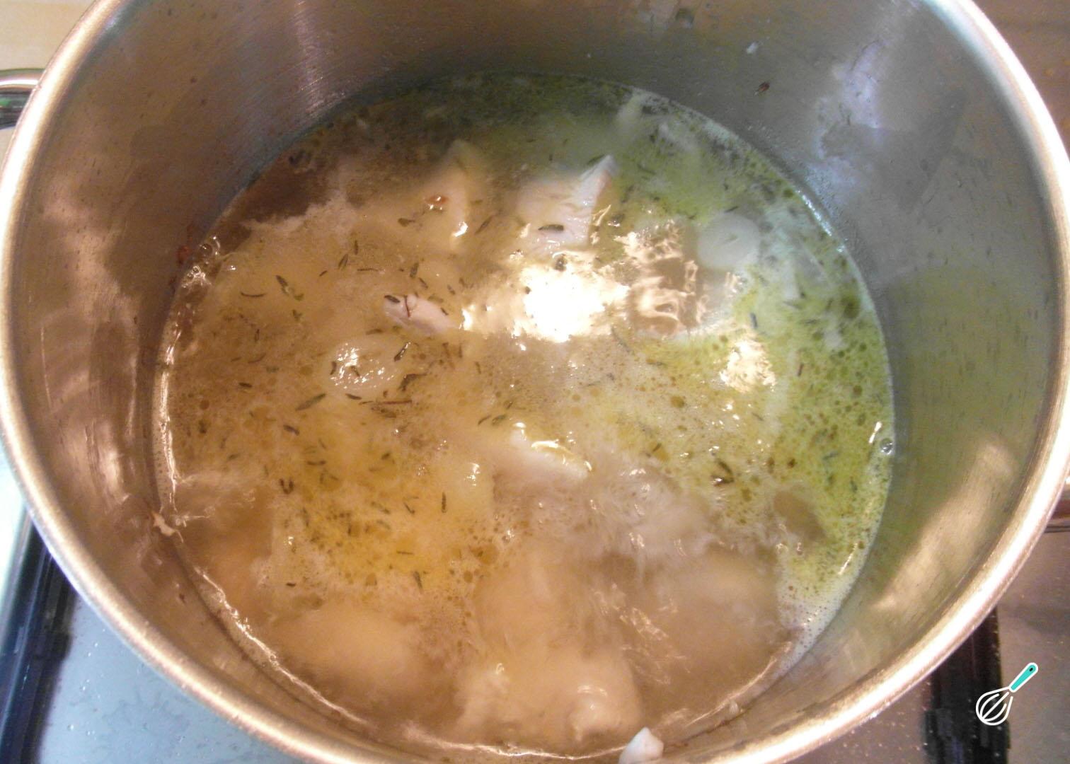 Em seguida coza os peitos de frango em uma panela com água e o cubo de caldo Knorr de sabor a seu gosto. Retire quando estiverem prontos e deixe esfriar para desfiar.