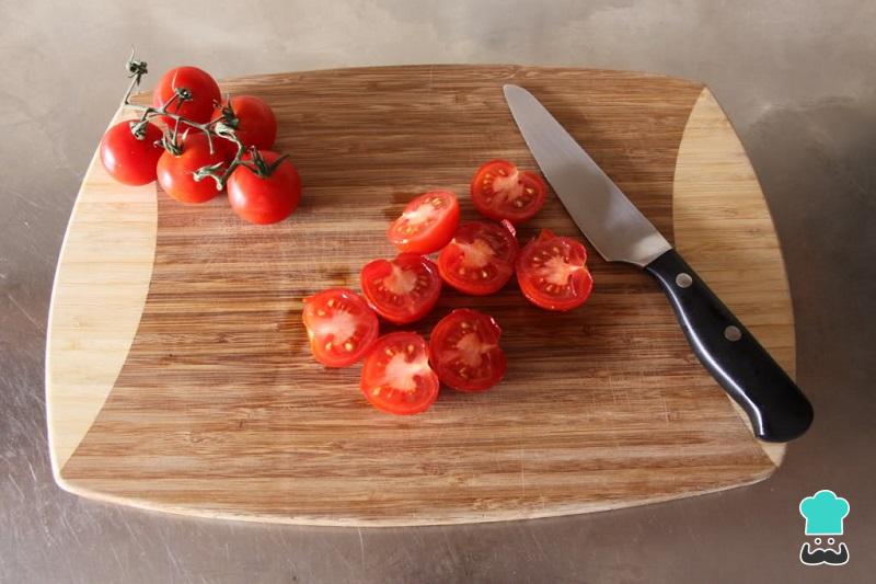 Comece o preparo da sua salada mediterrânica com a lavagem cuidada das folhas, dos tomates, do pepino e da cebola. Deixe escorrer.