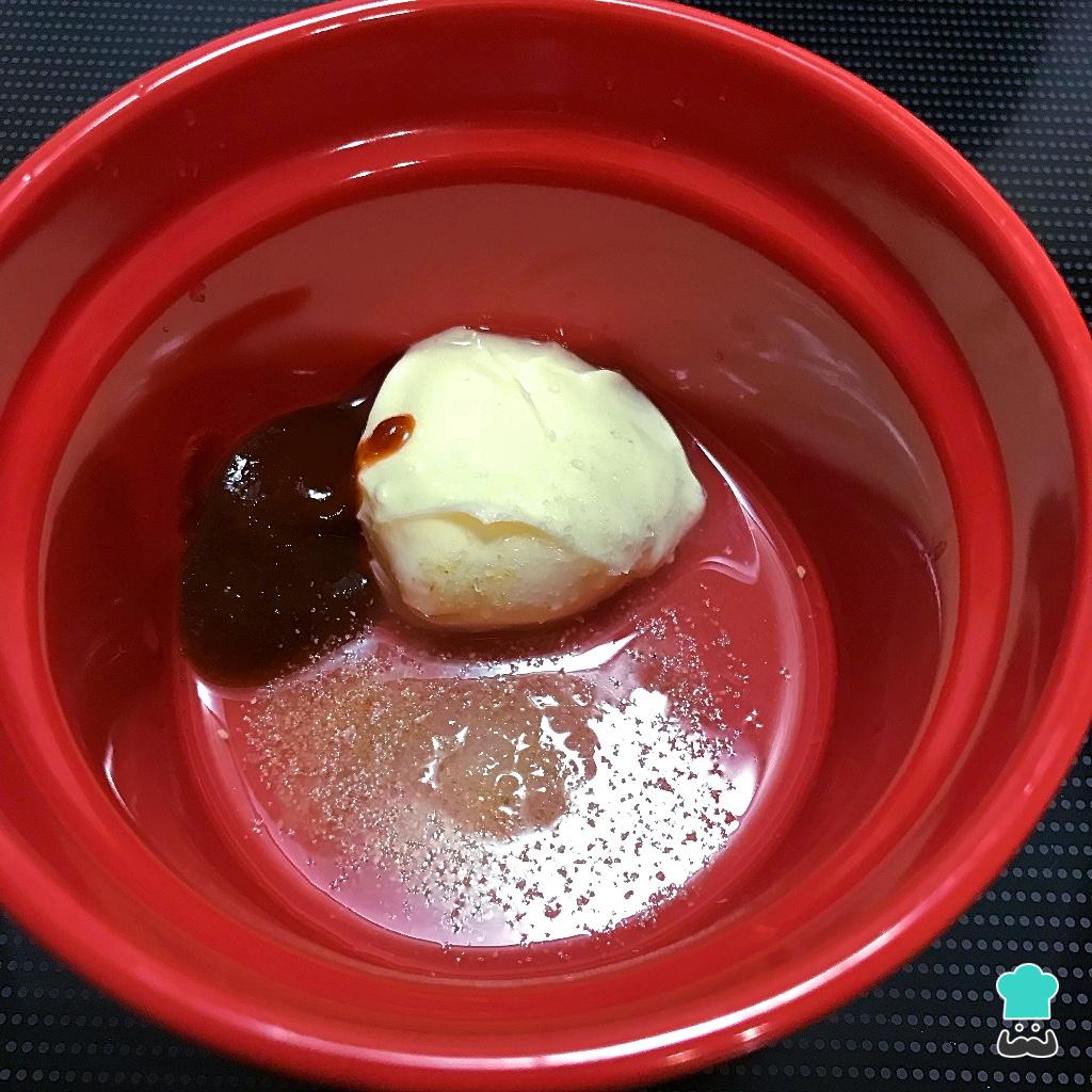 Despeje o molho sobre a travessa com os outros ingredientes e misture bem. Deixe descansar por pelo menos uns 10 minutos, para os sabores se fundirem.