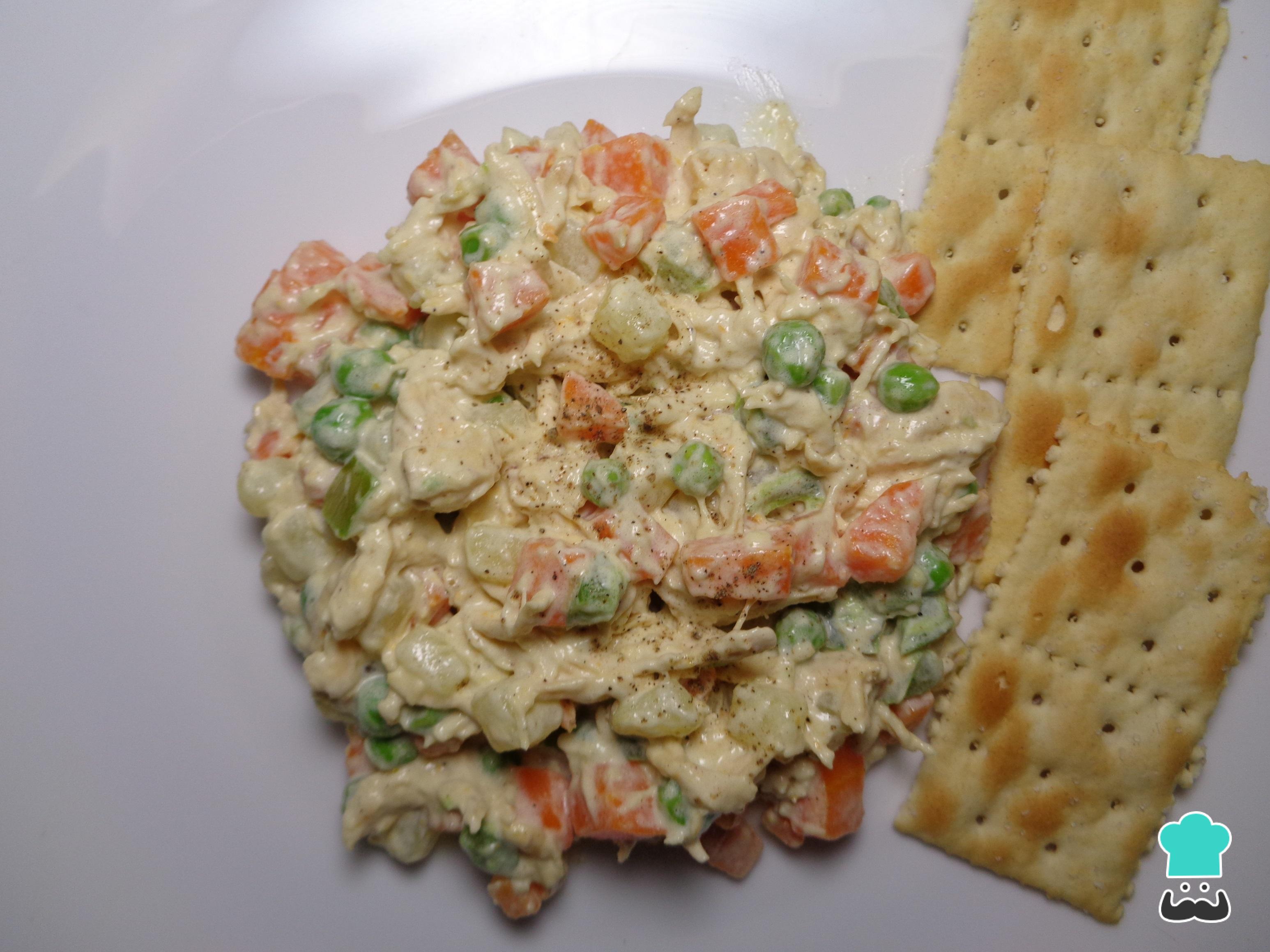 A salada russa é uma das mais populares em vários países e costuma ser confeccionada com batata, legumes e maionese. Normalmente chamamos salada a um prato frio com uma mistura de legumes cortados em cubos pequenos. Também se pode juntar algum tipo de proteína, massa ou arroz para obter um prato mais completo. Atualmente existe uma infinidade de receitas de saladas para elaborar em qualquer momento. Apesar de se poder elaborar saladas em qualquer época do ano, durante os meses de verão é muito mais comum tê-las na sua mesa, devido à sua fácil e rápida preparação como a sua capacidade de refrescar. Nesta ocasião decidi trazer para você uma típica salada russa, mas com um toque diferente: com frango. Desta forma o resultado será uma salada russa com frango, legumes e maionese. Siga o passo a passo do TudoReceitas e descubra como fazer esta salada russa com frango.