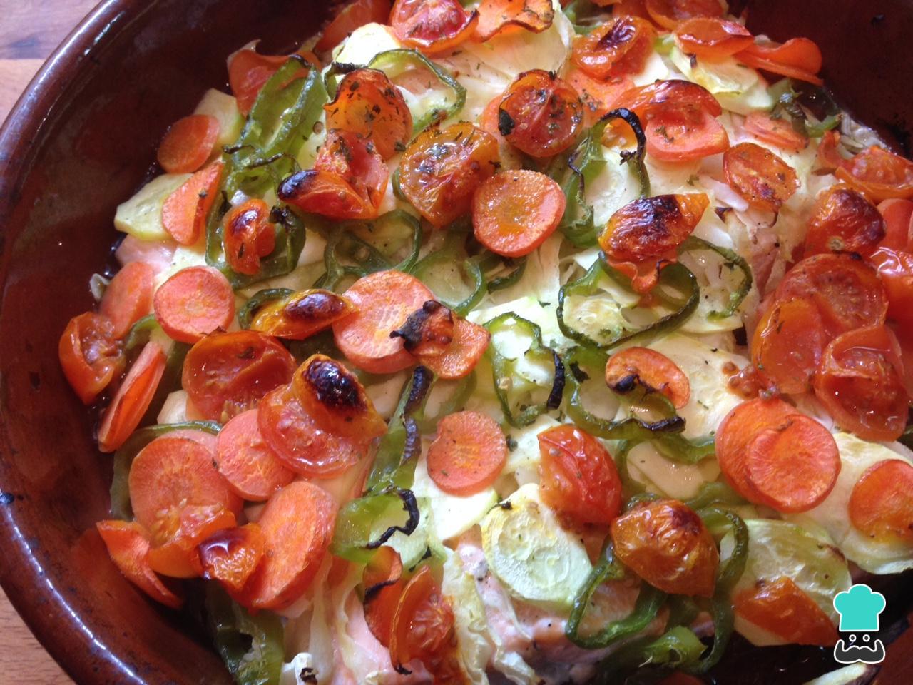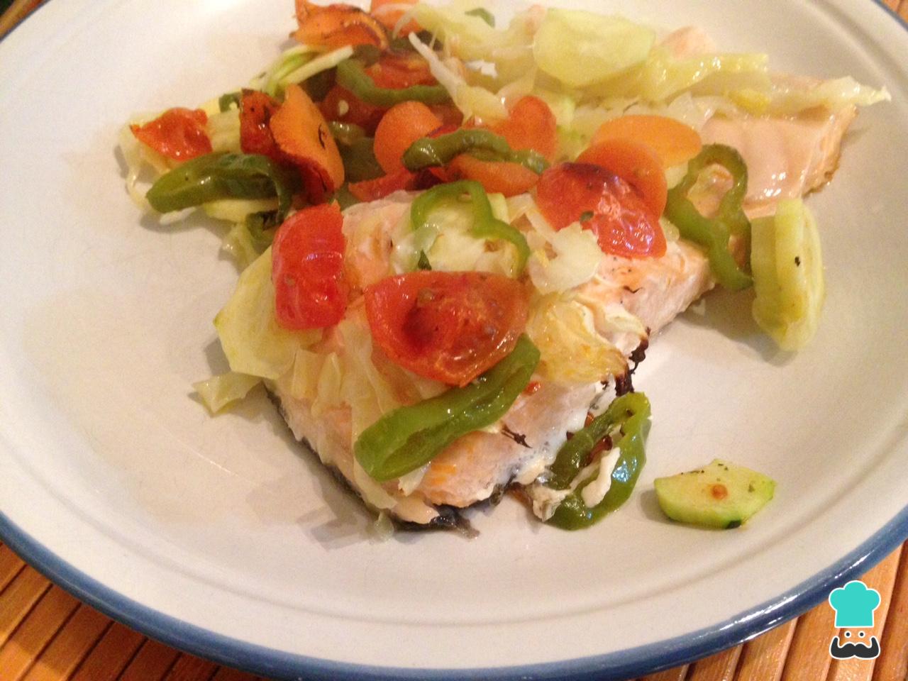 Adoro receitas onde o forno faz tudo sozinho. Salmão ao forno com legumes é uma delas, porque também cozinhamos os legumes no forno. O segredo é, simplesmente, cortar vegetais muito finos para que o tempo de cozimento seja o mesmo. O peixe é impregnado com os sabores dos vegetais... fácil e delicioso! Continue lendo e descubra as dicas para preparar esta receita de salmão com o TudoReceitas.com