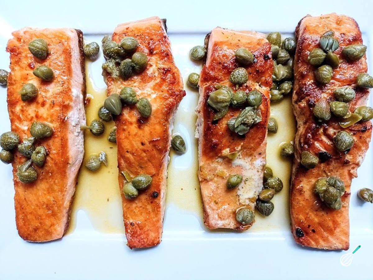 O salmão é um peixe que conquista os paladares por seu sabor marcante e versatilidade. Nesta ocasião vamos te ensinar como fazer salmão grelhado finalizado com molho de alcaparras. Essa receita é muito pràtica e rápida, não precisa ir ao forno e fica pronta em poucos minutos. Você vai se surpreender com esse salmão com alcaparras na frigideira, que fica delicioso para servir com saladas, purê, arroz. O molho de alcaparras para peixe é feito com manteiga, que garante um resultado delicioso e harmoniza super bem com o salmão.
