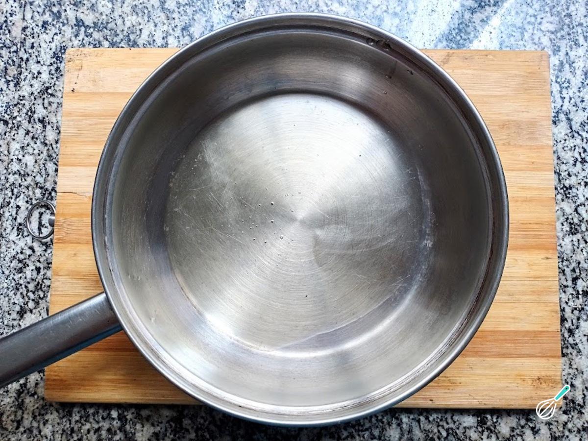 Em uma frigideira, colocar o azeite de oliva para esquentar.