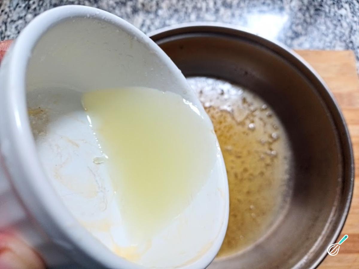 Após, no fogo baixo, colocar o suco de 01 limão, para um toque ácido.