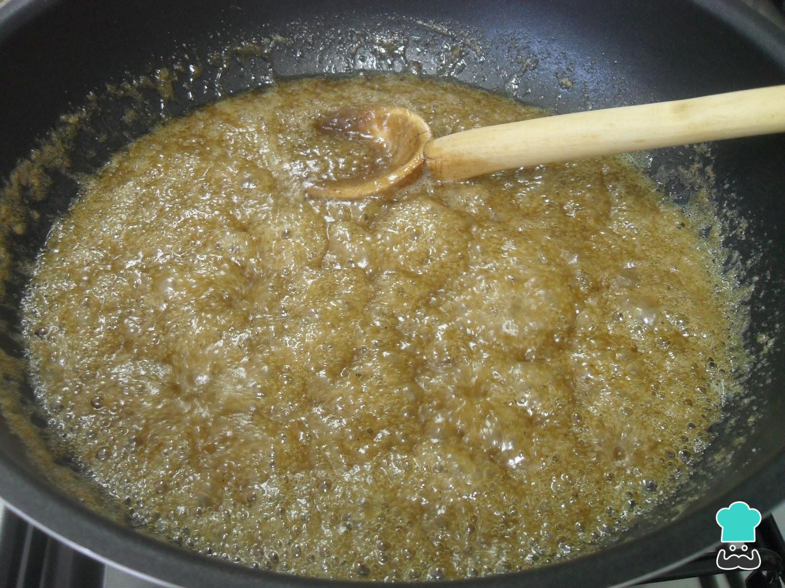 Prepare agora o molho de maracujá: coloque a manteiga em uma panela e leve ao fogo baixo, para derreter. Acrescente o açúcar e deixe ferver até formar uma calda.