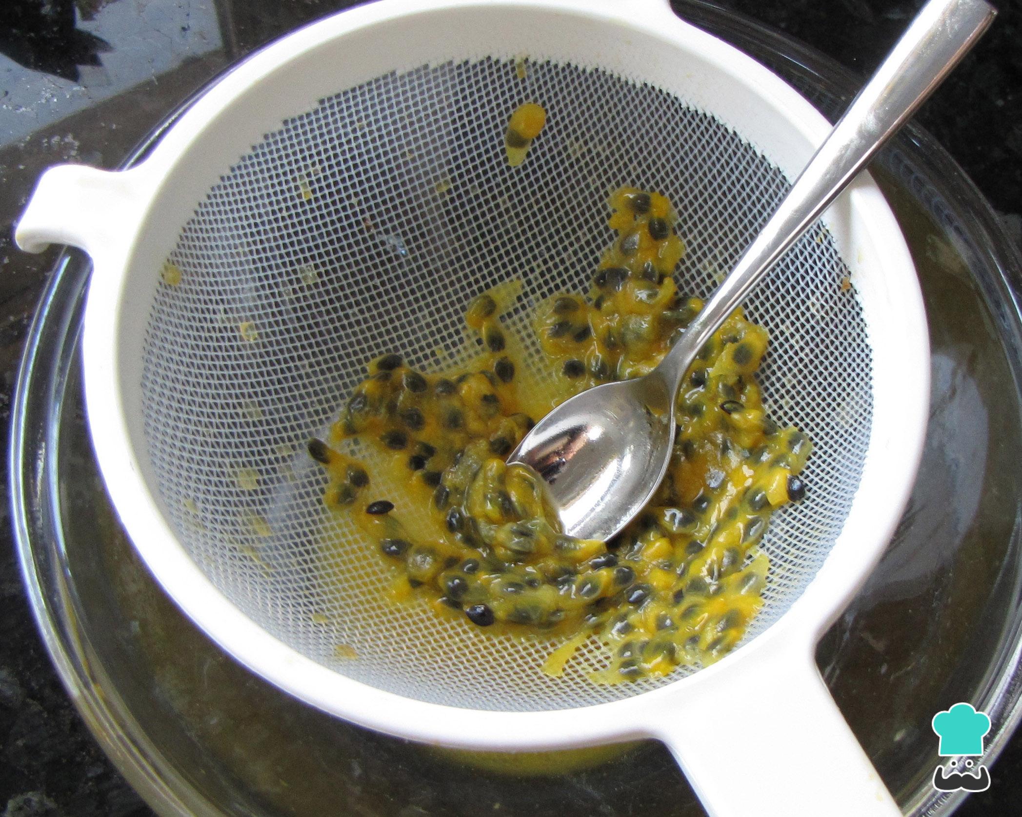 Para fazer o molho de maracujá e alcaparras retire a polpa dos maracujás e bata no liquidificador ou no processador. Passe por uma peneira, para filtrar as sementes.