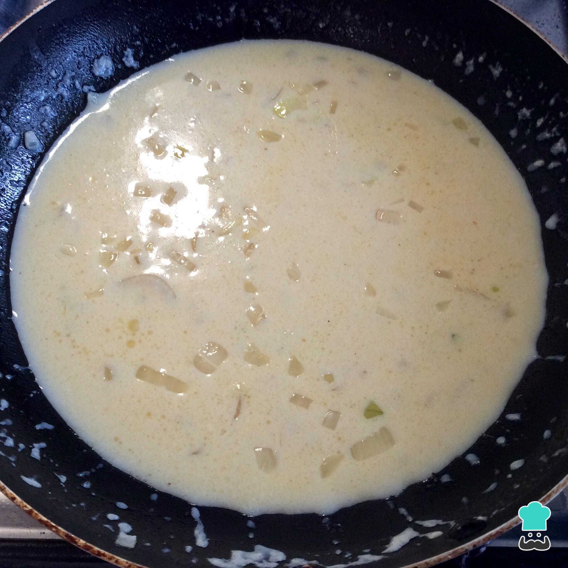 De seguida acrescente o creme de leite, retifique o sabor com sal e pimenta, e baixe o fogo.
