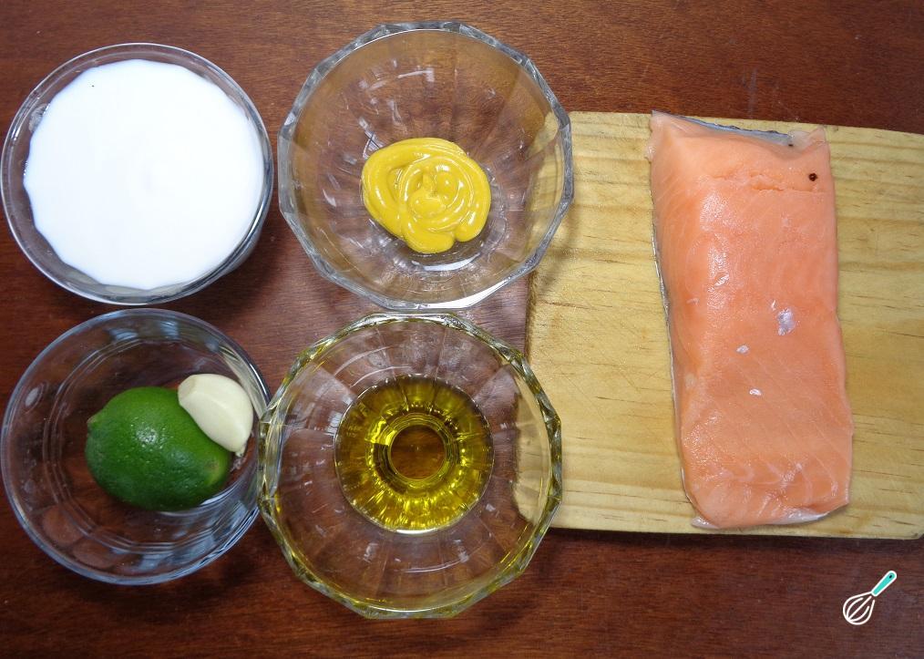 O primeiro passo para preparar esta receita de salmão na prancha com molho de iogurte, para poder preparar o seu prato mais rápido.