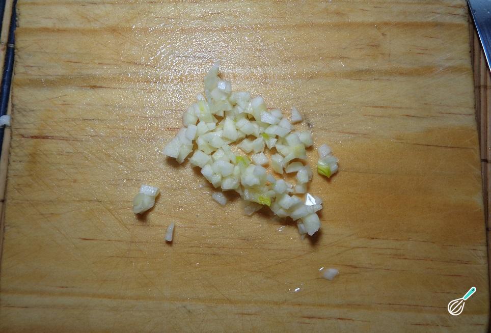 Comece por pegar no dente de alho e pique muito finamente o alho, como pode verificar na imagem abaixo.