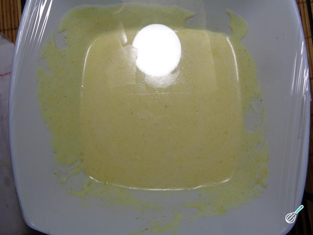 Uma vez, pronto o molho, cubra com um pouco de plástico de rolo e deixe repousar por 15 minutos na geladeira.