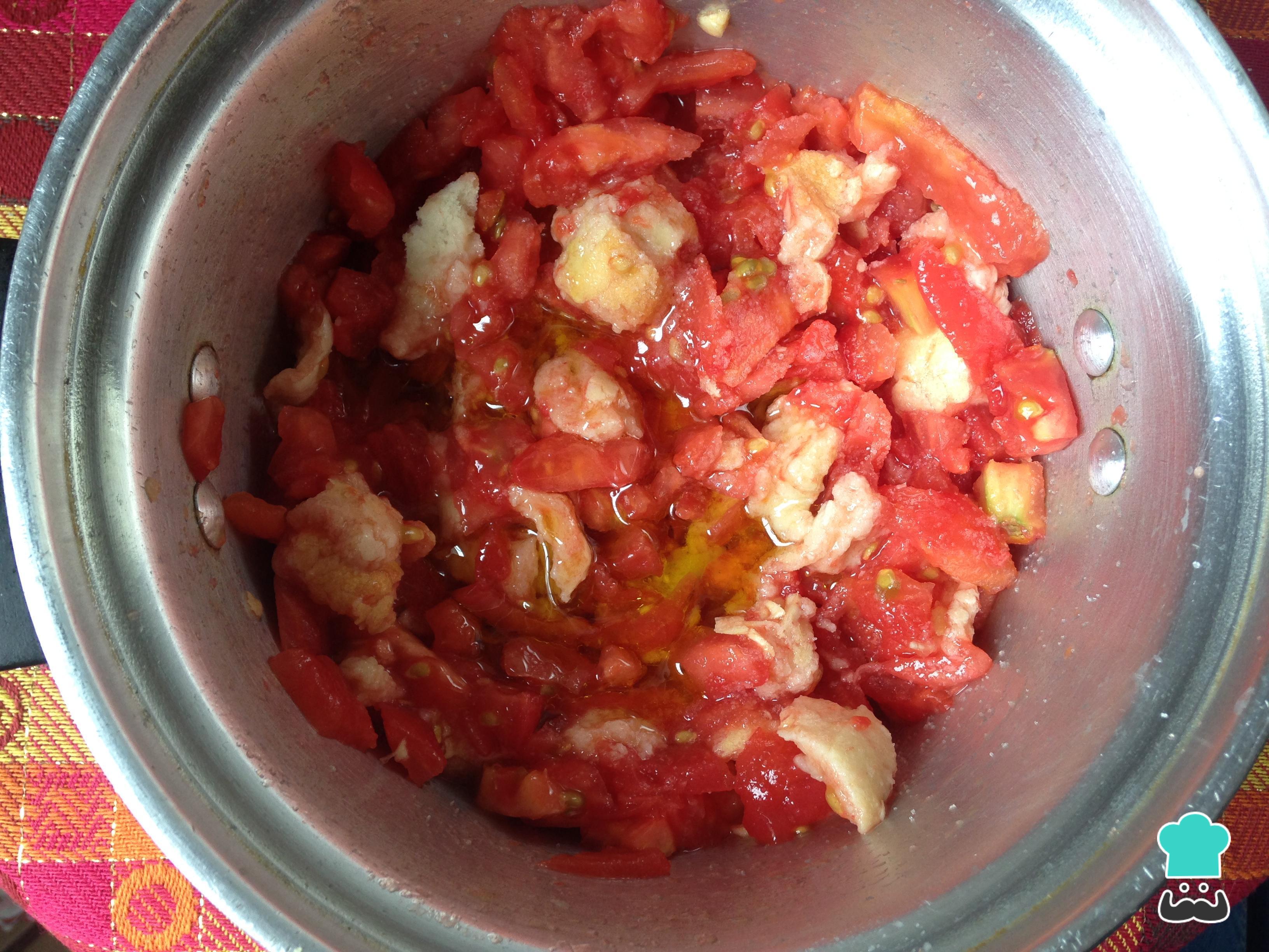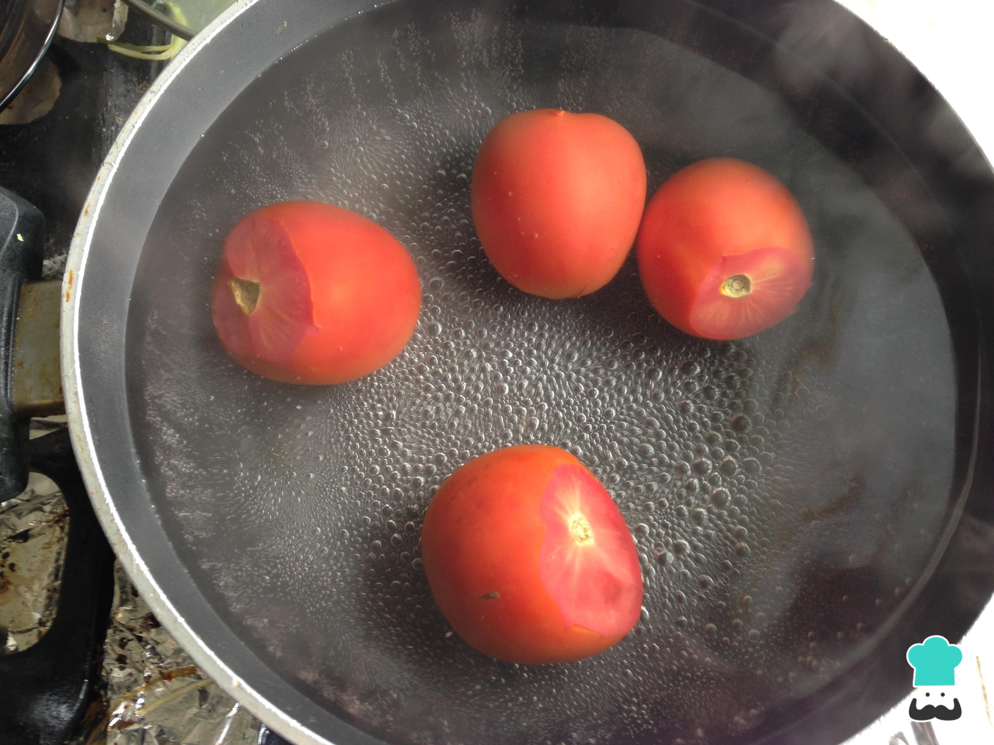 Coloque os tomates em água fervente por 1 minuto, a fim de remover a pele facilmente. Passado esse minuto escorra, passe os tomates por água fria e retire a pele.