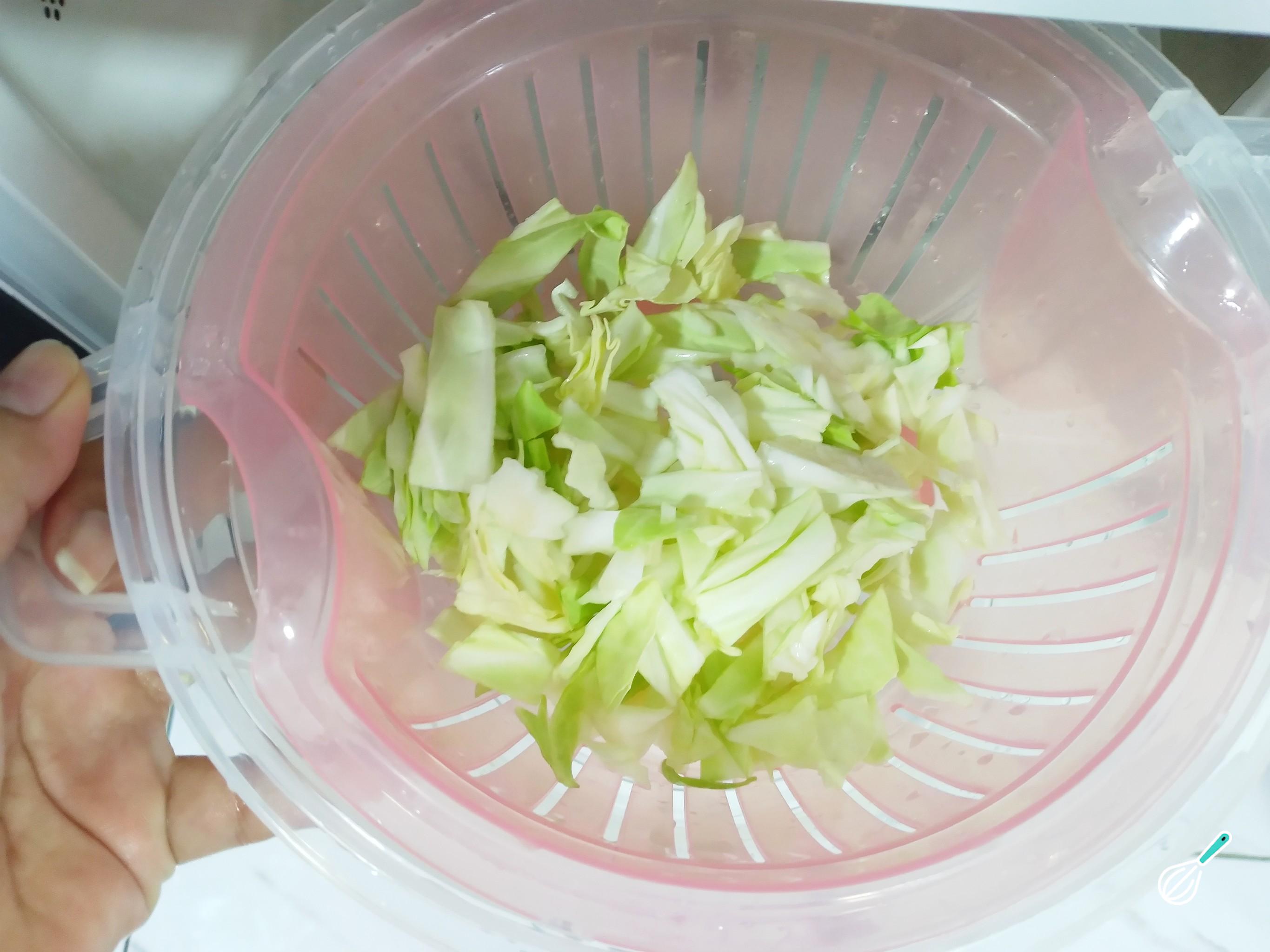 Feito isso, retire a batata da panela de micro-ondas e coloque o repolho para fazer o mesmo processo. A diferença é qie o repolho cozinha no vapor somente por 2 minutos. Depois disso retire do micro-ondas e reserve.