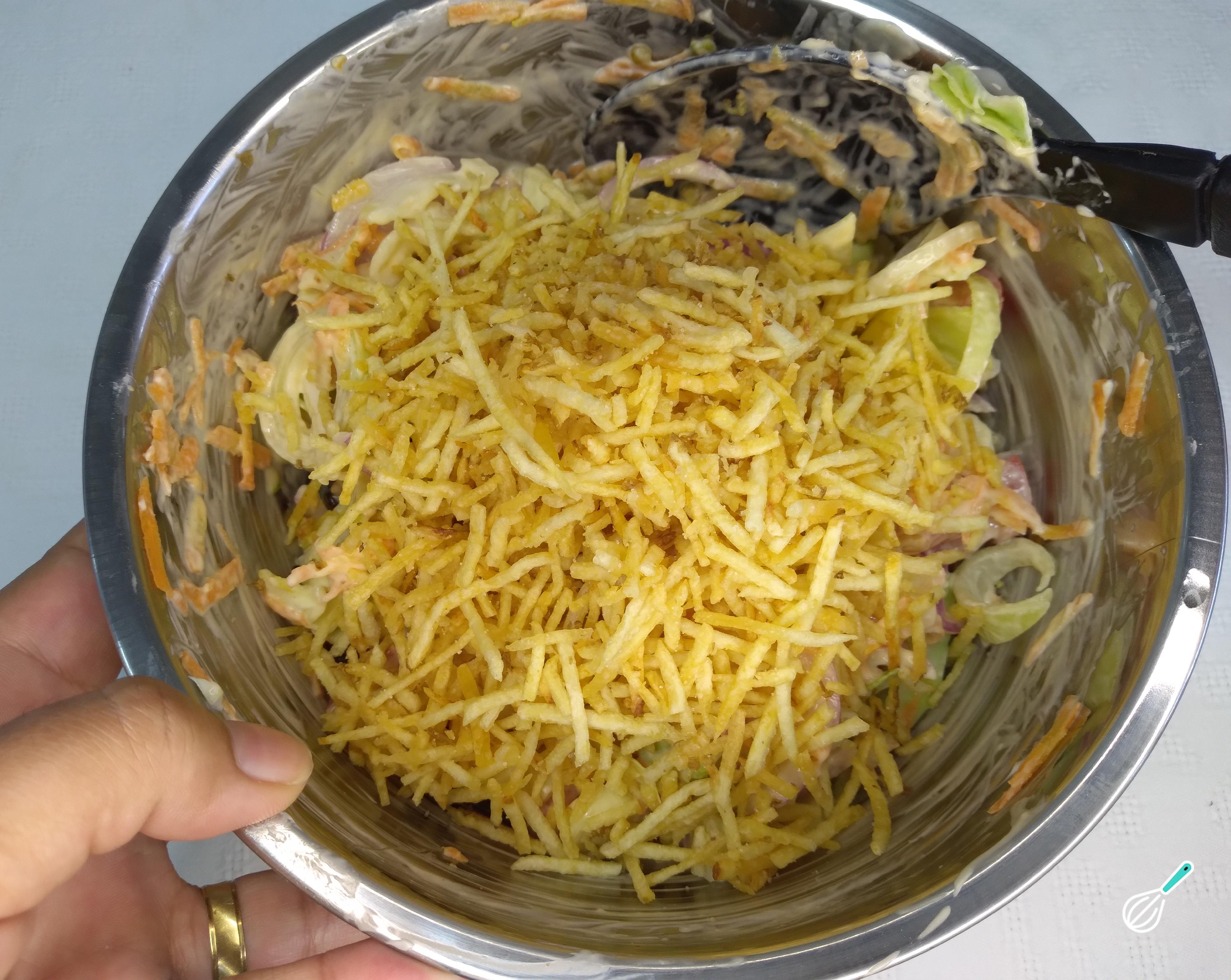 Por último acrescente a batata palha. Misture bem e leve para gelar por no mínimo 4 horas.