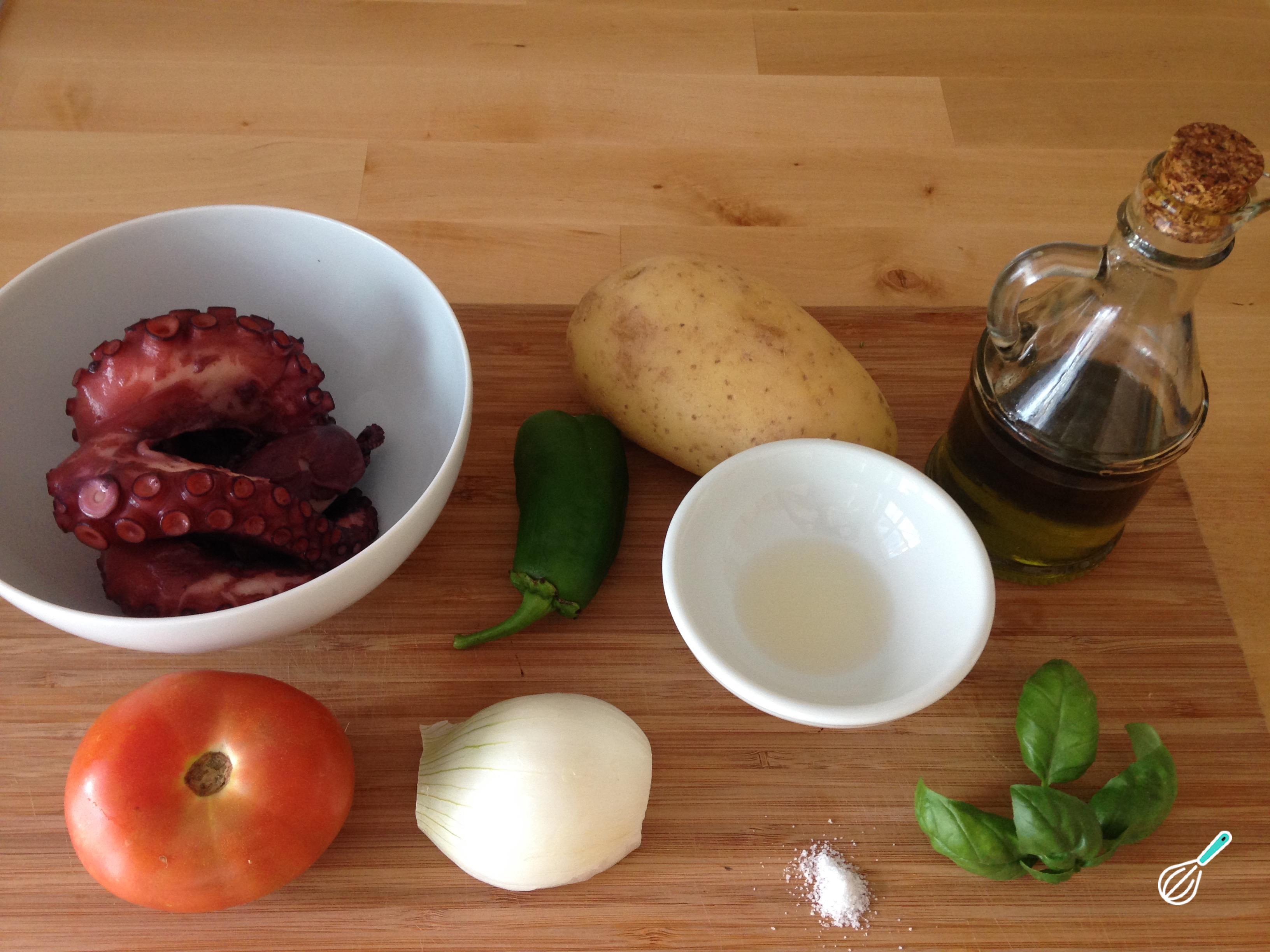 Para preparar esta salada de polvo com batatas comece por reunir todos os ingredientes - confira todos os truques para cozer polvo.